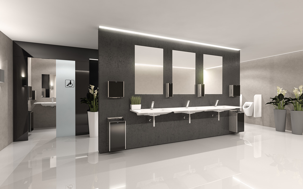 Die Exos Sanitärserie aus Waschtischen und Accessoires überzeugt mit ihrem Design, hoher Qualität und Funktionalität. Sie wurde für den Einsatz im öffentlichen und halböffentlichen Bereich konzipiert und eignet sich für bestehende ebenso wie für neue Lösungen. Durch die auswechselbaren Fronten und variable Größe der Mulden und Waschtische passt sich die Exos Serie an unterschiedliche bauliche Gegebenheiten an. Weitere Anpassungsmöglichkeiten bieten die einzelnen Produkte. So kann beispielsweise der Seifenspender wahlweise für Flüssigseife oder Schaum ausgelegt werden. Mit dieser Flexibilität bietet die Exos Architekten und Auftraggebern die Möglichkeit, auch im öffentlichen Bereich eine einheitliche Linie in der Badgestaltung zu realisieren. Die Fronten aus Glas oder Edelstahl sichern den modernen Look aller Accessoires. Alle Produkte der Exos Sanitärserie werden ausschließlich aus hochwertigen Materialien hergestellt.