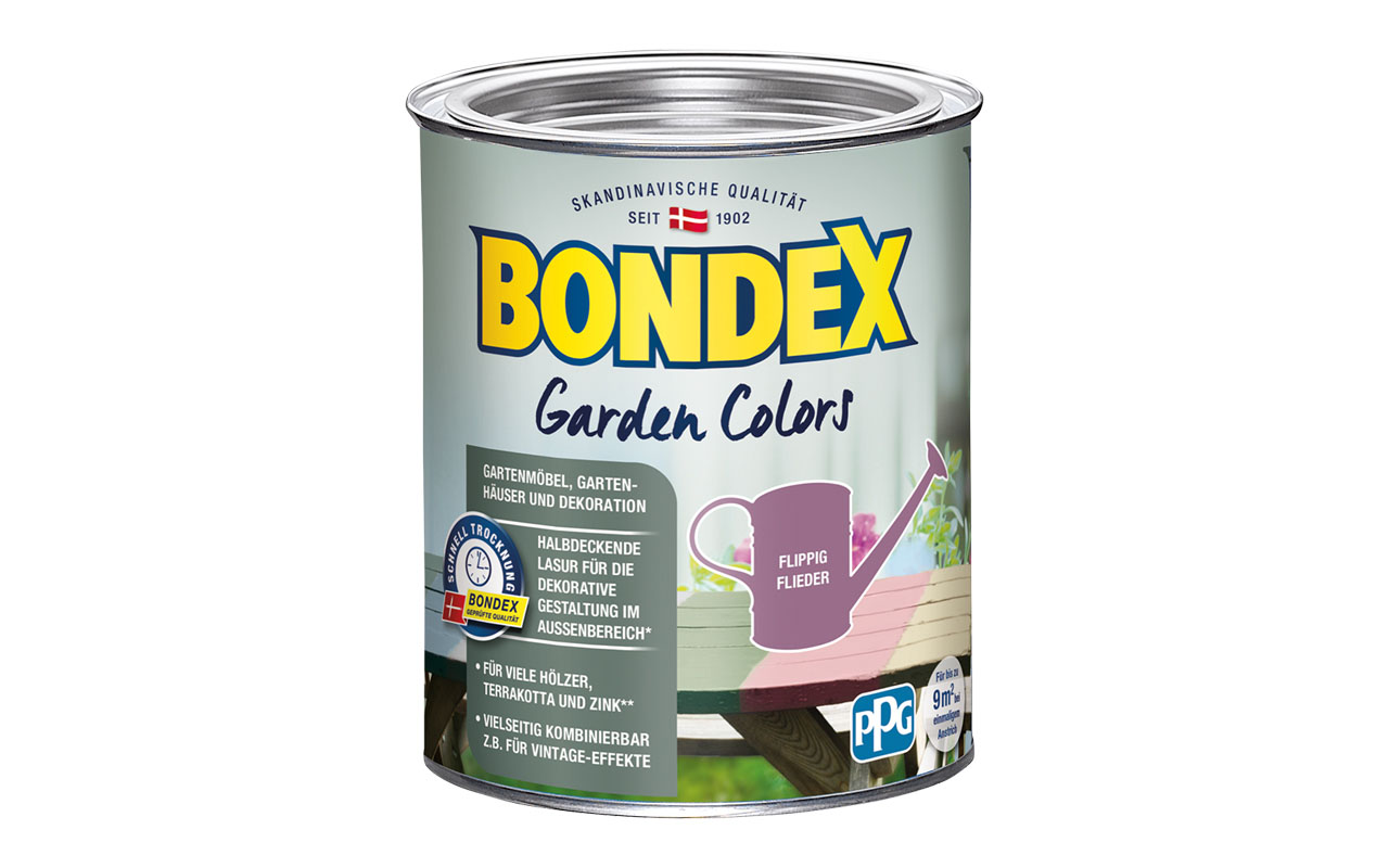 Shabby Chic und Vintage Look sind die Stilarten, die mit den Bondex Garden Colors auf Holz, Terracotta und Zink in zwölf verschiedenen Farben bespielt werden können, ob getupft, gerollt oder gestrichen.
