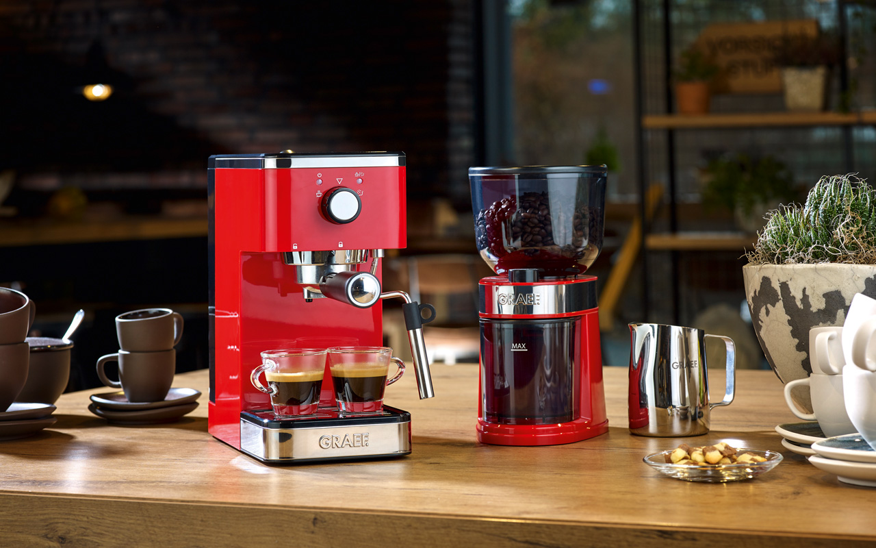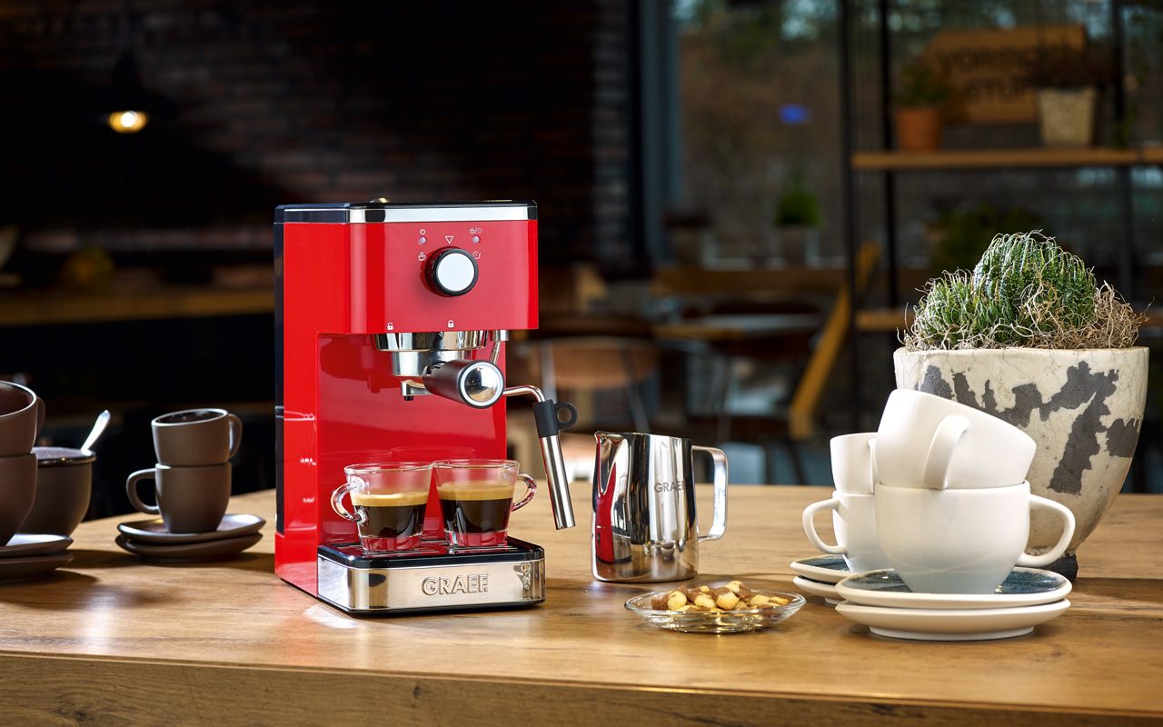 Die Siebträger-Espressomaschinen der ES400er Reihe aus dem Hause Graef überzeugen mit ihrer hohen Qualität, dem Design und dem Bedienkomfort. Sie sind sehr schmal gebaut und passen so auch in kleine Küchen. Auf den ersten Blick sind sie mit ihrem Edelstahlband als Mitglieder der Graef Produktfamilie erkennbar, den richtigen Pfiff gibt die farbige Gestaltung. Der herausnehmbare Wassertank fasst 1,25 Liter. Der Thermoblock heizt schnell auf. Auf der passiven Warmhalteplatte bleibt der Kaffee länger warm.