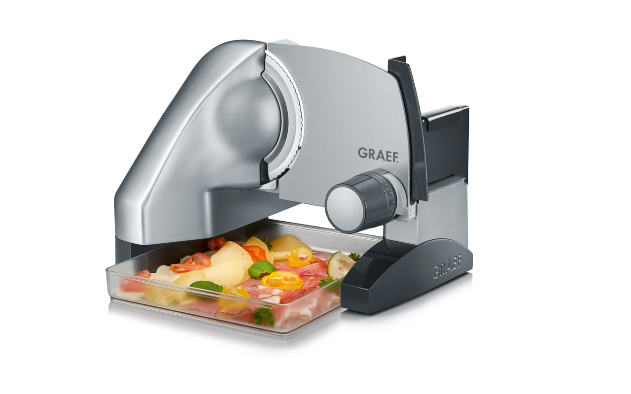 Der Allesschneider SKS500 von Graef zeigt sich in voller Qualität „Made in Germany“ mit Edelstahl-Wellenschliffmesser, einem Schlitten mit Edelstahlauflage und einem leisen, wartungsfreien Kondensatormotor. Auch designseitig kann sich der SKS500 sehen lassen. Sein zeitloses Design passt in fast jede Küche – nicht zuletzt danke der Auswahl an drei verschiedenen Farben. Verschiedene Elemente unterstützen außerdem den Bedienkomfort. So ermöglicht die erhöhte Bauweise das direkte Schneiden in eine Schüssel oder Auflaufform. Die zentrale Bedieneinheit hat eine stufenlose Schnittstärkeneinstellung bis zu 30 mm und ist mit einer dreifachen Kindersicherung ausgestattet. Ein MiniSlice Aufsatz ist als Zubehör enthalten, mit dem kleine Lebensmittel sicher, schnell und restlos geschnitten werden können.