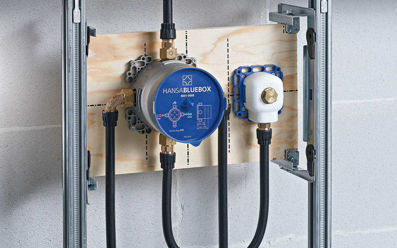 Das Unterputzsystem Hansabluebox von Hansa erfüllt die Anforderungen an Innovation, hohe Qualität und Funktionalität. Das System richtet sich an professionelle Badinstallateure. Die Innovation zeigt sich gleich an zwei Stellen: Zum einen verfügt das System über eine Ausrichteoption, mit dem Rosette und Fliesenfuge parallel ausgerichtet werden können. Zum zweiten bietet die Hansabluebox den Tiefenausgleich ohne Ablängen. Die keramische Umstellung funktioniert druckunabhängig. Sie trennt exakt zwischen Brause und Wanne und ist dauerhaft leichtgängig. Auch das verwendete Messing sowie die Abdeckplatte aus Metall sind ausschließlich aus hochwertigen Materialien hergestellt.