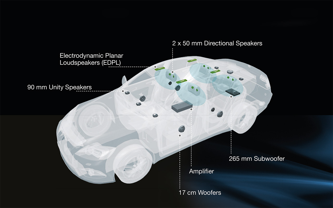 Neben Home-HiFi und mobiler Unterhaltung ist im Harman-Konzern auch eine große Abteilung für automobile Akustik angesiedelt. Von ihr kommen die Harman Individual Sound Zones, die das Hören im Auto revolutionieren. Nie mehr muss sich jeder Fahrgast für das Unterhaltungsprogramm des Fahrers begeistern, denn neben dem Unterhaltungssystem für alle gibt es in den Kopfstützen und im Dachhimmel für jeden Fahrgast mehrere Lautsprecher. Über die kann jeder seine eigene Musik laufen lassen, und Signalprozessoren sorgen dafür, dass das Konkurrenzprogramm von den anderen Sitzplätzen sowie Geräusche von außen weitgehend unterdrückt werden. Jeder Fahrgast kann im System noch feinjustieren, wenn ihm noch zu viel Material von den anderen zu hören ist. Der Fahrer hingegen bekommt alle Warnsignale von außen mit, und auch alle Navi-Ansagen werden auf seinen Platz durchgestellt.