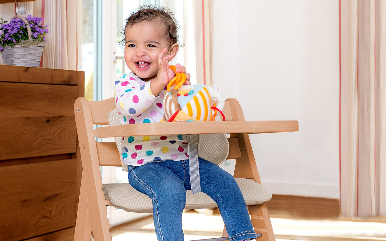 Der mitwachsende Holzhochstuhl „Beta+“ aus dem Hause hauck, bietet eine ergonomisch angepasste Sitzposition für jedes Alter, da Sitzbrett und Fußplatte in der Höhe und Tiefe verstellbar sind. Da der Hochstuhl mit großem Essbrett, zwei separaten Gurtsystemen, Vorderbügel und 2-teiliger Sitzauflage geliefert wird, kann der Stuhl bereits ab dem ca. 6. Monat verwendet werden. Durch das praktische, große Essbrett kann der Hochstuhl auch frei im Raum verwendet werden. Das verwendete deutsche Buchenholz stammt aus nachhaltig bewirtschaftetem Holzanbau und macht den „Beta+“ so stabil und robust, dass er bis 90kg belastbar ist und auch weit über die Kinderzeit hinaus Verwendung finden kann. Der Holzhochstuhl ist in den beiden Farben „White-washed“ und „Natur“ erhältlich.
