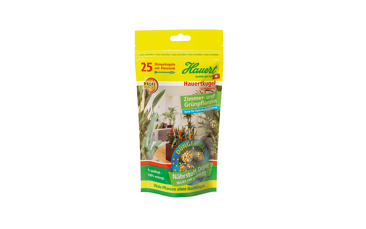 Mit der Hauertkugel bringt die gleichnamige Marke einen Dünger auf den Markt, der sich als Innovation mit hoher Qualität und Funktionalität auszeichnet und außerdem auch ökologische Aspekte berücksichtigt. Die Kugel gibt es für Zimmer- und Grünpflanzen, für Balkon- und Kübelpflanzen sowie für Tomaten und Gemüse. Sie wird einfach bei der Bepflanzung mit in den Boden gesteckt und sorgt dank ihres Nährstoffdepots ein Jahr bzw. eine Saison lang für die passende Düngung. Alternativ kann sie mit dem beiliegenden Pikierstab auch nachträglich noch in die Erde eingebracht werden. Die Hauertkugel wirkt direkt an der Wurzel, also genau da, wo die Nährstoffe aufgenommen werden.
