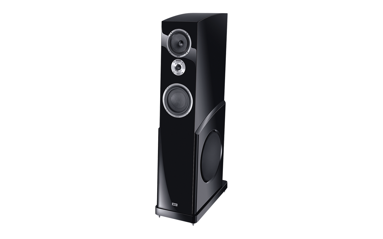 Das ist State-of-the-Art Lautsprechertechnik. Hecos Concerto Grosso vereint alles, was in Sachen Lautsprecherbau machbar ist. Das Ergebnis sind High-End-Lautsprecher, die nicht nur mit ihrem Gewicht von jeweils mehr als 60 Kilo beeindrucken. Das beginnt beim Hochtöner, dessen Polyfiber-Compound-Membran Frequenzen bis hin zu 53 kHz abbilden kann, reicht über das mit einem extrem leistungsstarken AlNiCo-Magneten bestückte Mitteltonchassis bis hin zum 300mm messenden, seitlich angebrachten Tieftöner plus ergänzendem Bassradiator, die im Zusammenspiel Frequenzen bis hinunter zu 16 Hz wiedergeben. Möglich wird dies durch extrem selektierte und perfekt kombinierte Materialien von der massiven Anschlussklemme über die aus extrem eng tolerierten Bauteilen kombinierte Frequenzweiche bis hin zu den Chassis aus exklusiven Materialien beispielsweise einer Papier-Woll-Kombination. Das ganze ist in einem leicht nach hinten geneigten, äußerst aufwändig und massiv gefertigten Gehäuse untergebracht, das schon rein optisch keinerlei Zweifel an den klanglichen Fähigkeiten lässt.