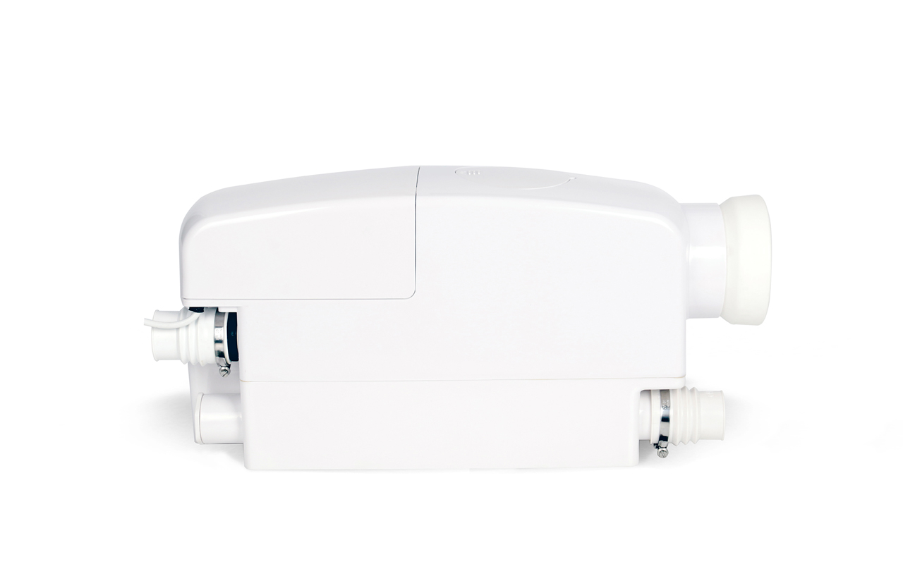 Die WC-Kleinhebeanlage San.iQ cut V wurde speziell für eine Installation in der Vorwand konzipiert. Sie transportiert Schmutzwasser und Fäkalien mit einer Temperatur von 35°C – kurzzeitig auch bis zu 60°C – und führt es unterhalb der Kanalrückstauebene ab. Bei Hänge-WCs kann das Modell dank seiner geringen Breite leicht hinter der Vorwand eingebaut werden, so dass die Anlage für den Benutzer nicht zu sehen ist. Damit das System nicht in die Vorwand entlüftet und so Feuchtigkeit und Geruch entsteht, bietet die San.iQ cut V die Möglichkeit, eine externe Entlüftung anzuschließen und die Abluft so nach außen zu leiten. Das eingebaute Barracuda-Schneidsystem aus Edelstahl zerkleinert Feststoffe, das Bodengefälle verhindert Ablagerungen.