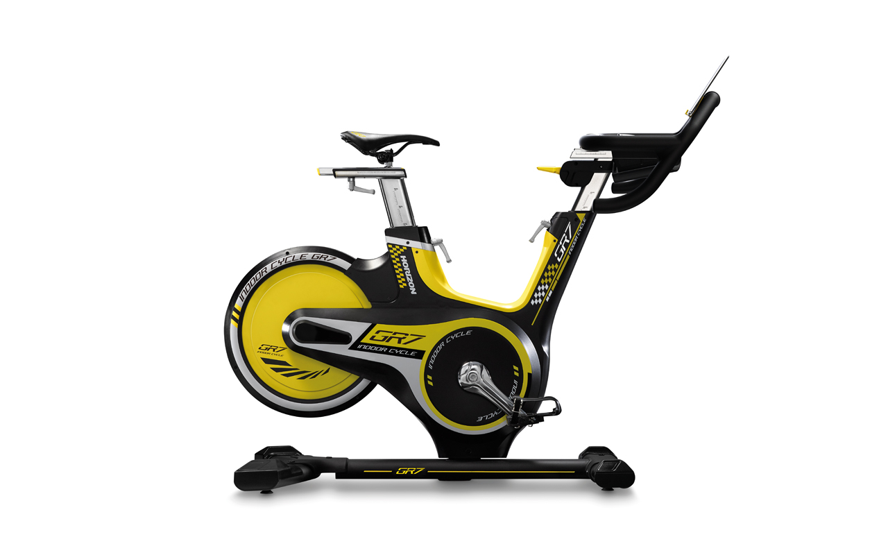 Das Indoor Bike GR 7 von Horizon Fitness bringt das Gefühl von Straßenradrennen nach Hause. Das gesamt Bike wurde so gestaltet, dass es möglichst nah an echten Rennrädern liegt. Der Nutzer kann außerdem das Pedalsystem austauschen, um beispielsweise die eigenen Schuhe auch Indoor zu nutzen. Rennlenker und der Performance-Sattel können stufenlos eingestellt werden. Mit der Standard-Aufnahme können aber auch Teile des eigenen Straßenrennrades verwendet werden. Beim Training unterstützt das Lichtsystem „Glow Ride“ den Fahrer. LED-Lichter führen durch die unterschiedlichen Phasen und die damit verbundenen Trainingspositionen einer simulierten Strecke. Mit Virtual Active fährt der Sportler interaktiv durch reale Landschaften auf der ganzen Welt. Wettbewerbe und Challenge-Programme sorgen zusätzlich für Abwechslung.