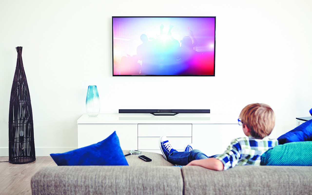 Funktioniert akustische Klasse auch ohne viel Masse? Klares »Ja«, wie die schlanke 2.1-Soundbar Humax STE-1000BSW beweist. Für Klangqualität sorgen insgesamt fünf Chassis, die von einer 160 Watt starken Endstufe angetrieben werden. Neben Klinken- und Lichtleiteranschluss empfängt die STE-1000BSW auch Bluetooth-Signale. Unterschiedliche Klang-Panoramen ermöglichen die perfekte Anpassung des Klangerlebnisses an den Inhalt. Digitales Processing ist auch hier der Schlüssel für die beim bloßen Anblick kaum zu ahnende Klangqualität, die den meisten Fernsehern eine gänzlich andere akustische Kulisse liefern wird – egal ob an der Wand montiert oder einfach auf einem Fuß platziert.