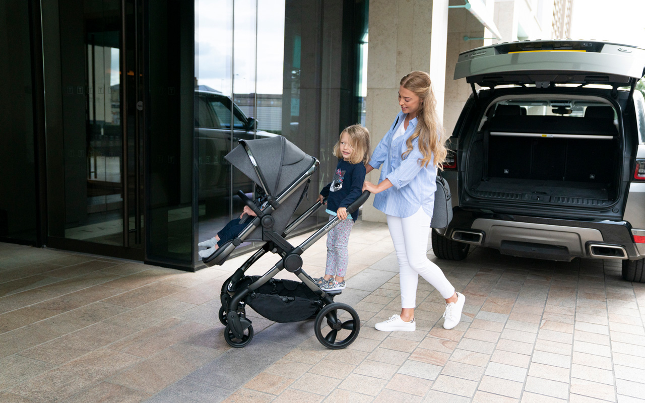 + Kinderwagen zum schnellen Auf-, Ab- und Umbau