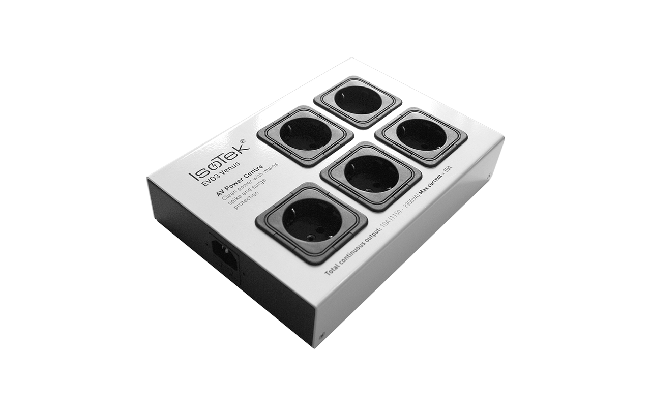 Mit dem EVO3 Venus bietet IsoTek eine vergleichsweise preiswerte Stromversorgung für Musik- und Heimkinoanlagen an. Es stehen insgesamt fünf Netzausgänge zur Verfügung. Positive Auswirkungen auf Bild und Ton sind aufgrund der signifikanten Verringerung von Funkeinstreuungen, der hervorragend leitenden Innenverkabelung aus versilberten Kupferlitzen sowie der Reduzierung von Gegentaktstörungen zu erwarten. Des Weiteren wird die Anlage wirksam gegen Spannungsspitzen geschützt. In der Praxis gewann das Klangbild spürbar an Ausdrucksstärke und Griffigkeit.