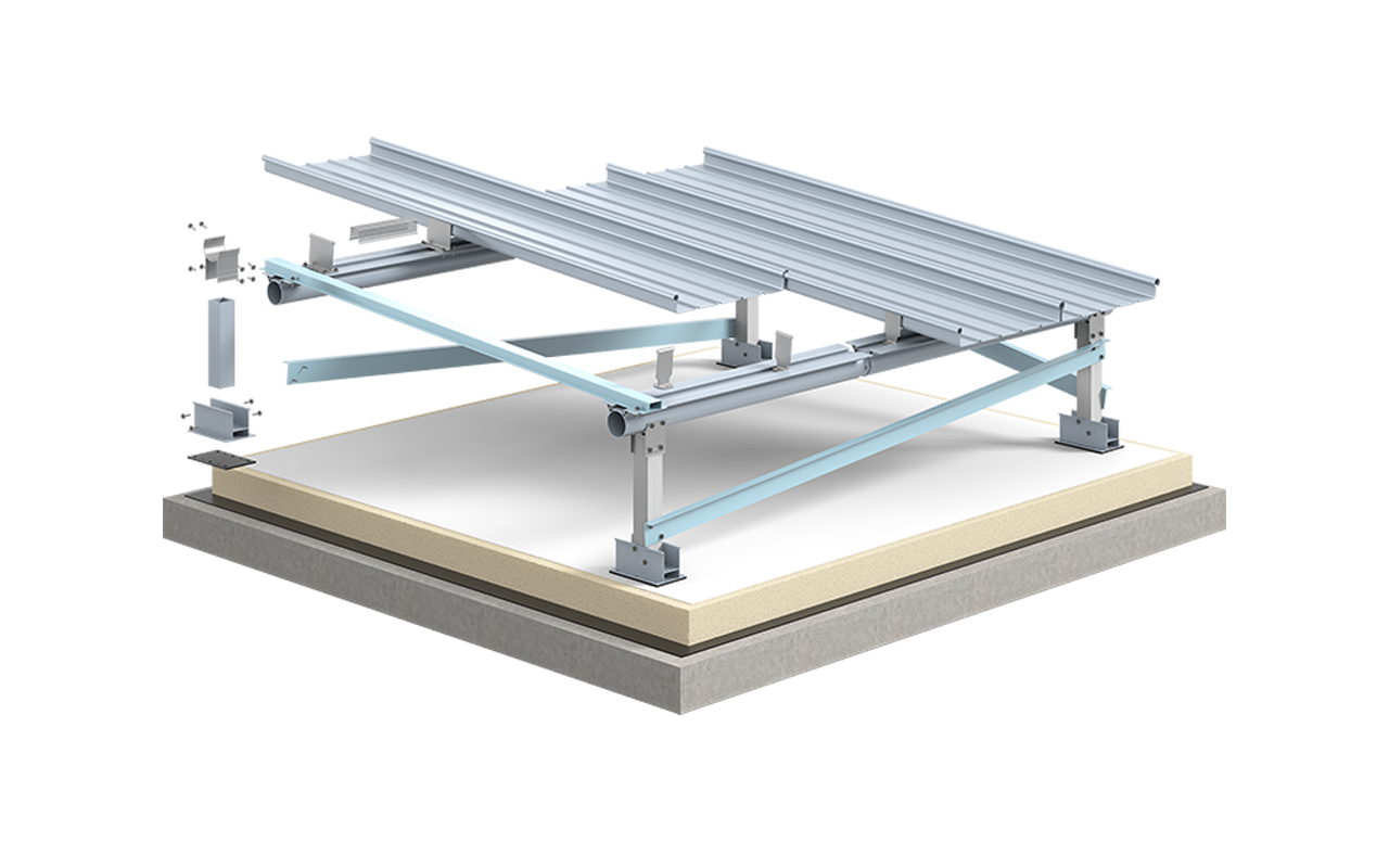 Das Vario LB System von Kalzip wurde speziell für die Sanierung von Flachdächern entwickelt. Es erlaubt die Umwandlung eines Flachdaches in ein sicheres Gefälledach unterschiedlicher Art (Satteldach, Pult- oder Walmdach). Das Vario LB besteht aus stranggepressten Aluminiumprofilen. Das bedeutet ein geringes zusätzliches Strukturgewicht; daher ist das Vario LB auch für statisch kritische Dachaufbauten geeignet. Durch die Entfernung der Kiesschüttung können zusätzliche Traglast- und Sicherheitsreserven aktiviert werden.