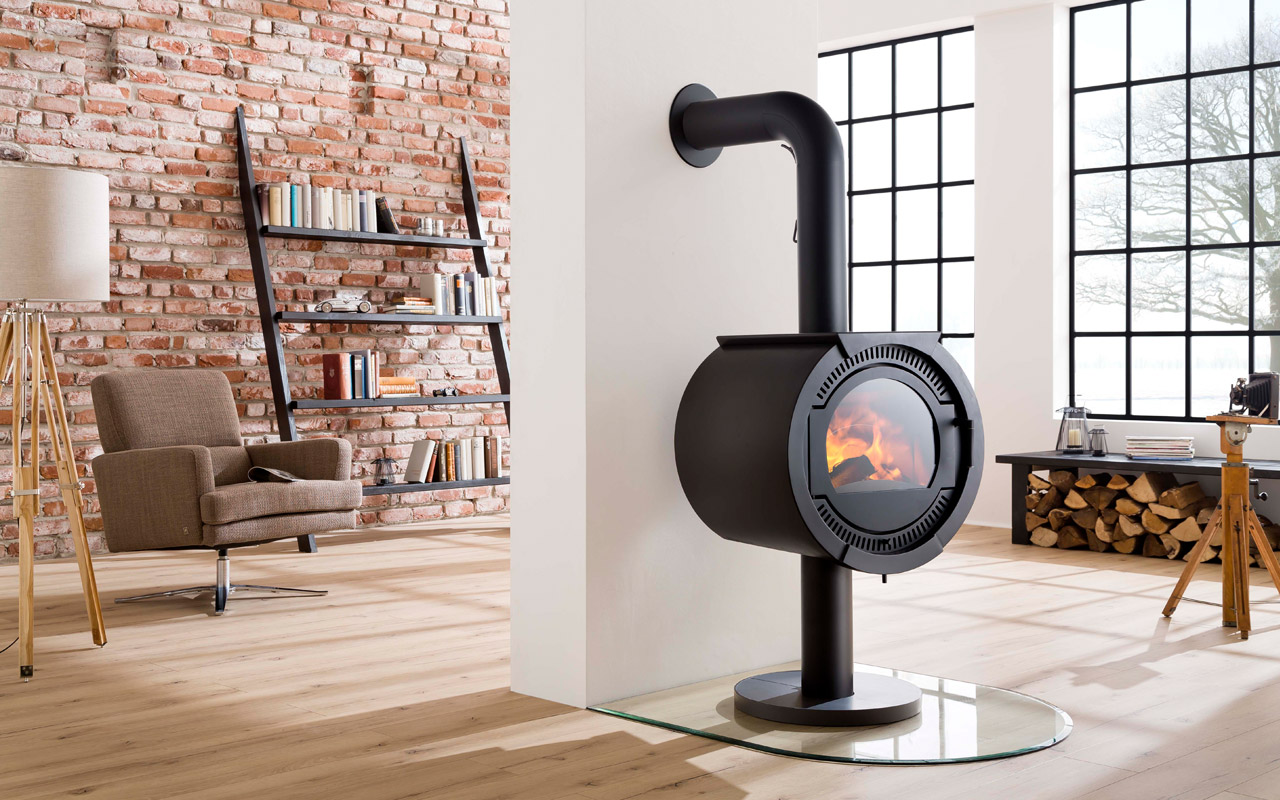 Beim Kleining Bull’s Eye ist der Name Programm: Der Kaminofen sieht aus wie ein Bullauge eines Schiffes – und hebt sich damit im Design deutlich von anderen Modellen ab. Weiteres Designelement ist die Topplatte, die ganz nach Wunsch in RAL-Farben individualisiert werden kann. Der Bull’s Eye zeichnet sich außerdem durch seine hohe Qualität aus. Gefertigt in Deutschland, verfügt er über eine Feuerraumauskleidung aus Schamotte mit Gussrost. Die äußere Verkleidung besteht aus Stahl. Das Keramikglas des Ofens ist hitzebeständig bis 750° C. Ein weiterer Vorteil kommt vor allem bei einer freien Platzierung im Raum zum Tragen, denn der Bull’s Eye kann um 360° gedreht werden.