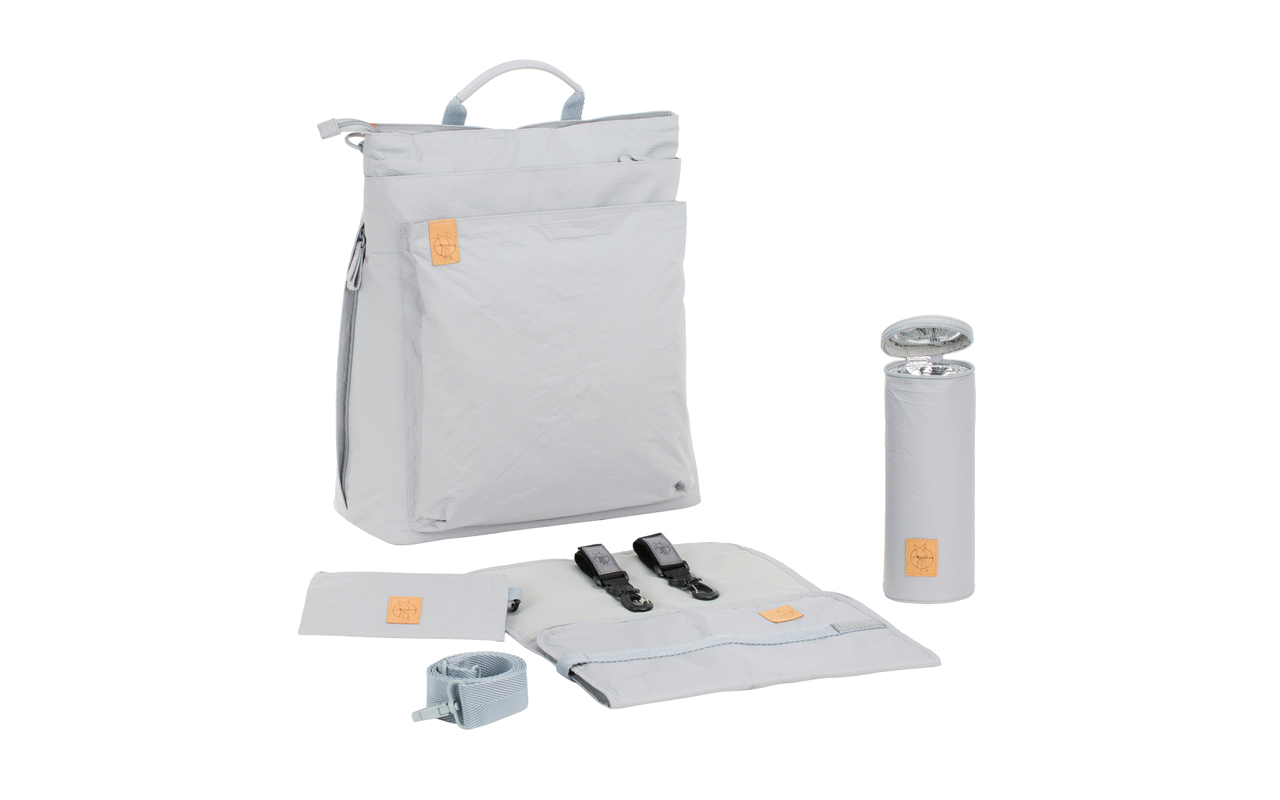 + Zubehör: wasserabweisende Wickelunterlage, isolierter Flaschenhalter, Gläschenhalterung und Kinderwagenbefestigung