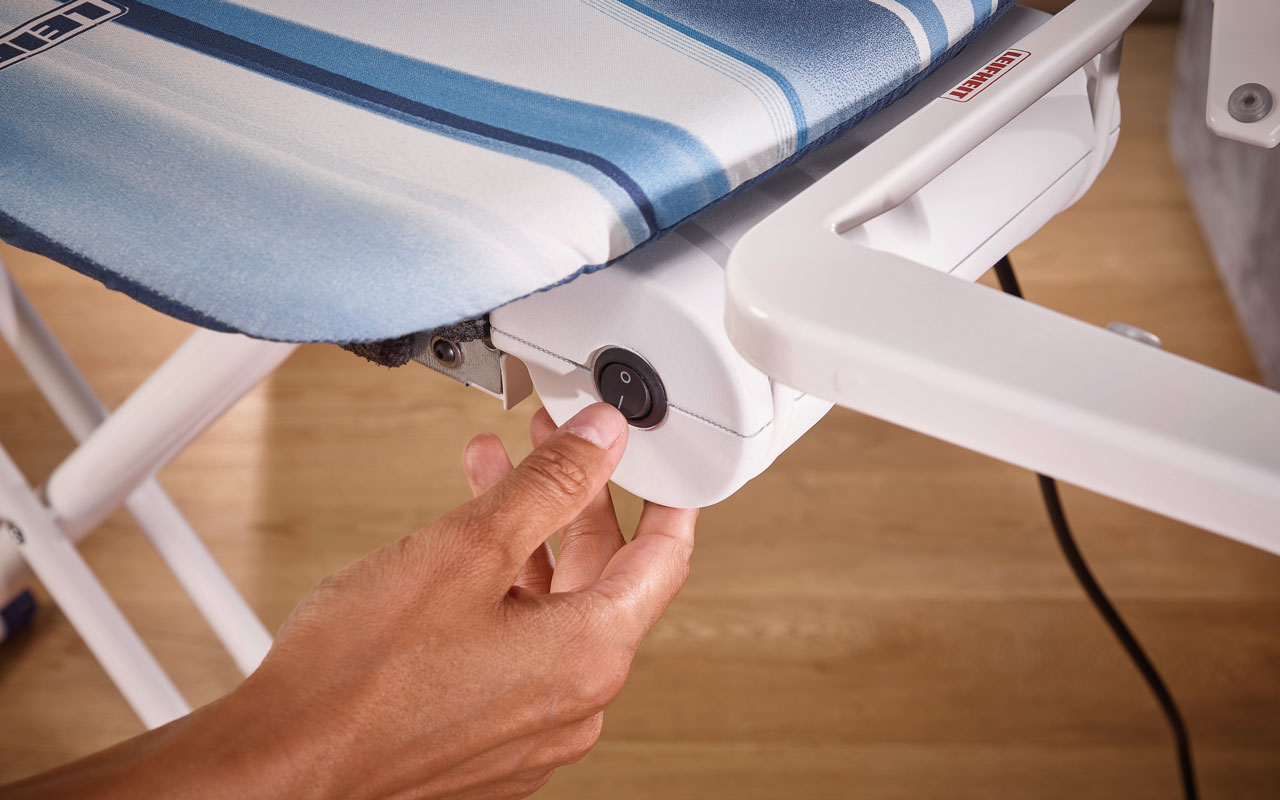 + integrierte VDE-Steckdose für den Anschluss des Bügeleisens direkt am Bügeltisch