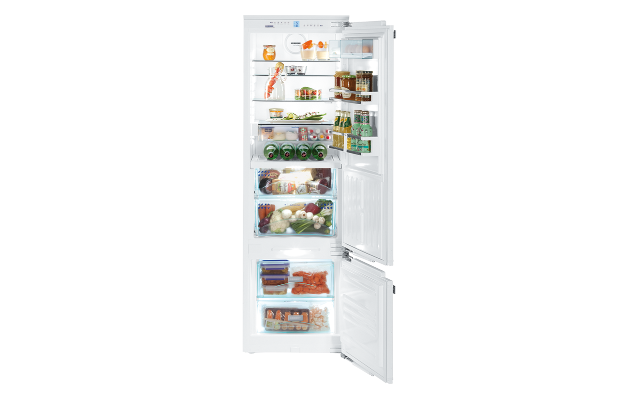 Die „ICBP 3256“ Kühl-Gefrierkombination mit BioFresh aus dem Hause Liebherr ist in der Energieeffizienzklasse A+++ angesiedelt. Die Ablageflächen des Einbaugerätes sind aus Sicherheitsglas mit Edelstahlprofil. Zwei komfortabel zu entnehmende VarioBoxen sind integriert. Die Temperaturanzeige erfolgt über Touch Elektronik via LC-Display. Das SoftSystem dämpft die Bewegung bei der Türschließung ab und gewährleistet auch bei voller Beladung der Innentür ein sanftes Schließen. Die Tür wird ab einem Öffnungswinkel von 30° automatisch geschlossen. Langlebige und stromsparende LED-Beleuchtung ist beidseitig in die Seitenwand integrierte. Für Ausleuchtung und Übersicht in den BioFresh-Safes sorgt eine in die Trennplatte integrierte LED-Beleuchtung. Die BioFresh-Safes sind komplett ausziehbar und mit einem Selbsteinzug mit sanfter Schließdämpfung ausgestattet. Durch zwei vollständig getrennt regelbare Kältekreisläufe kann die Temperatur mit DuoCooling präzise und unabhängig voneinander im Kühl- und Gefrierteil geregelt werden.