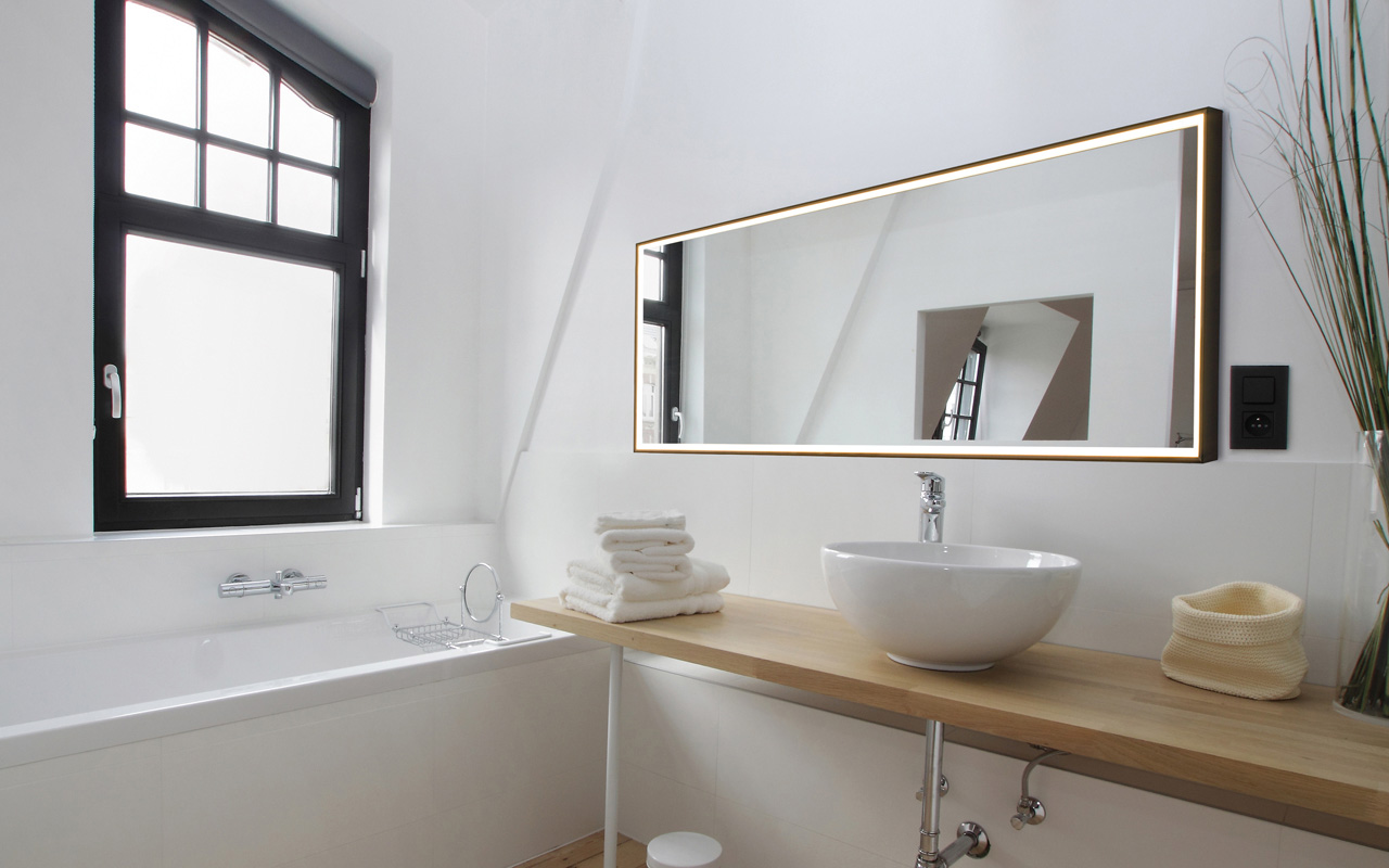 + in den Rahmen integrierte LED-Beleuchtung mit angnehmer Farbtemperatur 3.000 K