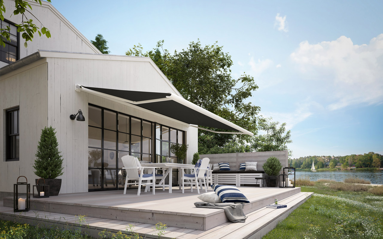 + kompakte Kassettenmarkise vor allem für kleinere Bereiche