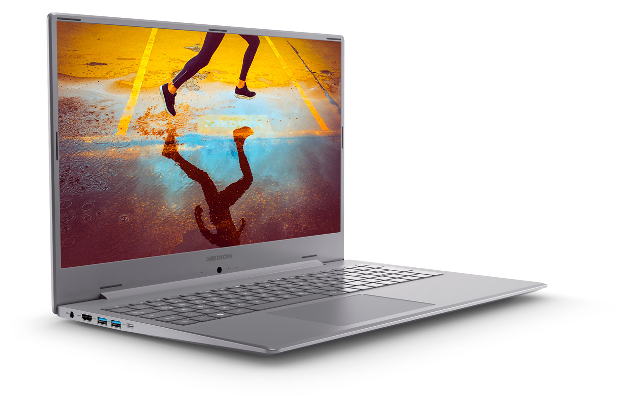 Das Medion Akoya S17401 im Premium Aluminium Design überzeugt mit hochwertiger Ausstattung und seinem schlanken Design. Dabei zeigt sich der Rahmen um das Display genauso schlank wie das Notebook insgesamt: es ist nur 18,4 mm dick. Ein Intel Core i7-Prozessor der achten Generation sorgt für die nötige Leistung, eine bis zu 1.000 GB große SSD-Platte für Geschwindigkeit und Speicherplatz. Zahlreiche Anschlüsse für USB, HDMI sowie ein Kartenleser gehören zum Funktionsumfang hinzu.