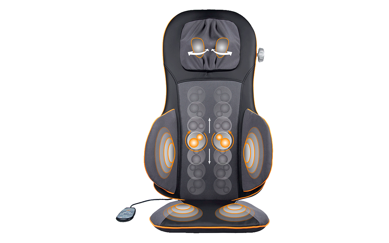 Die Massagesitzauflage MC 825 von Medisana ist ein ergonomisches Produkt von hoher Qualität, gepaart mit Bedienkomfort und Funktionalität. Die Auflage passt auf viele herkömmliche Sessel und wird mit einer Fernbedienung gesteuert. In der Funktionsweise kombiniert die Auflage eine intensive Shiatsu-Massage mit einer gezielten Luftdruckmassage, mit der bestimmte Akupressur-Punkte stimuliert werden. Zur individuellen Einstellung kann die Massage verschieden intensiv eingestellt werden, ebenso die Wärme und die Massagezonen. Auch die Höhe der Nackenmassage ist verstellbar. Die Qualität der MC 825 zeigt sich in der hochwertigen Verarbeitung und der 3jährigen Garantie. Der Komfort wird außerdem durch Luftkissen erhöht, mit denen die Auflage ausgestattet ist.