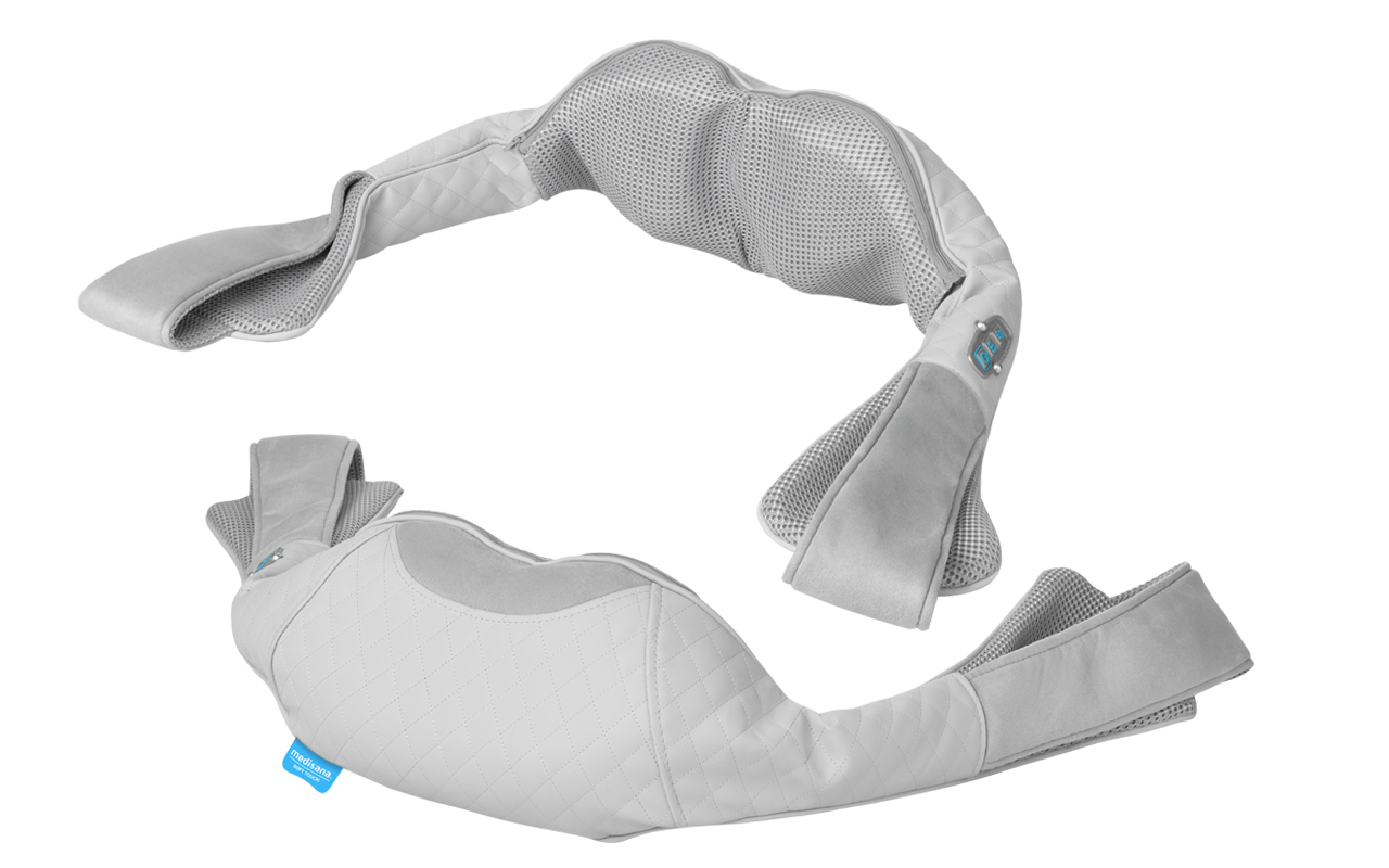 Das Medisana NMG 850 Nackenmassage-Gerät bietet eine entspannende Nackenmassage stets und überall. Die mehrstufige Massageintensität kann durch einfaches Ziehen an den Halteschlaufen eingestellt werden. Ein zusätzlich integriertes Kontrollpanel ermöglicht weitere Einstellungen. Das Kissen ist flexibel einsetzbar und kann auch zur Massage der Schultern, des Rückens oder der Beine verwendet werden. Zusätzlich bietet es eine Rotlicht- und Heizfunktion und besteht aus einfach zu waschendem Material.