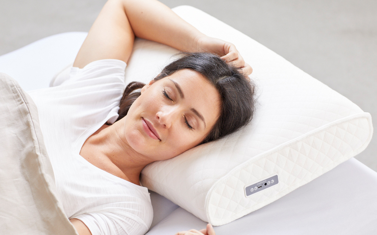 Wer bevorzugt es nicht, schnell in einen tiefen, langen und erholsamen Schlaf zu fallen? Das SP 100 SleepWell Kissen von Medisana ist da ein toller Helfer. Nicht nur besteht es aus praktischem Formgedächtnisschaum, es verfügt zudem auch über ein integriertes Lautsprecher- und Musiksystem, das bei Bedarf Entspannungsmusik abspielt. Das Sleep Genius Music-Programm kontrolliert hierbei den Schlaf und hilft, schneller einzuschlafen. Mit 57,5 x 38 x 12.5 cm ist das Kissen groß genug für alle Schlafpositionen. Wer mit die werksmäßig zusammengestellten Entspannungsmusik ergänzen will, kann dies über einen USB-Port, über den das Kissen auch aufgeladen wird, oder durch Bluetooth tun. Zudem bietet sich hier eine Möglichkeit, Kopfhörer einzustecken.
