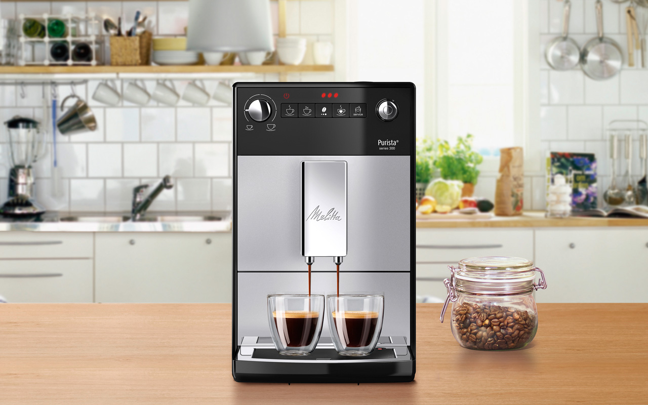 Einfache Bedienung und ein leises Mahlwerk sind die herausragenden Merkmale der Kaffee-Vollautomaten Melitta Purista. Ein modernes Bedienfeld, große Tasten und ein intuitiv bedienbarer Drehregler vereinfachen den Weg zum kompletten Kaffeegenuss.
