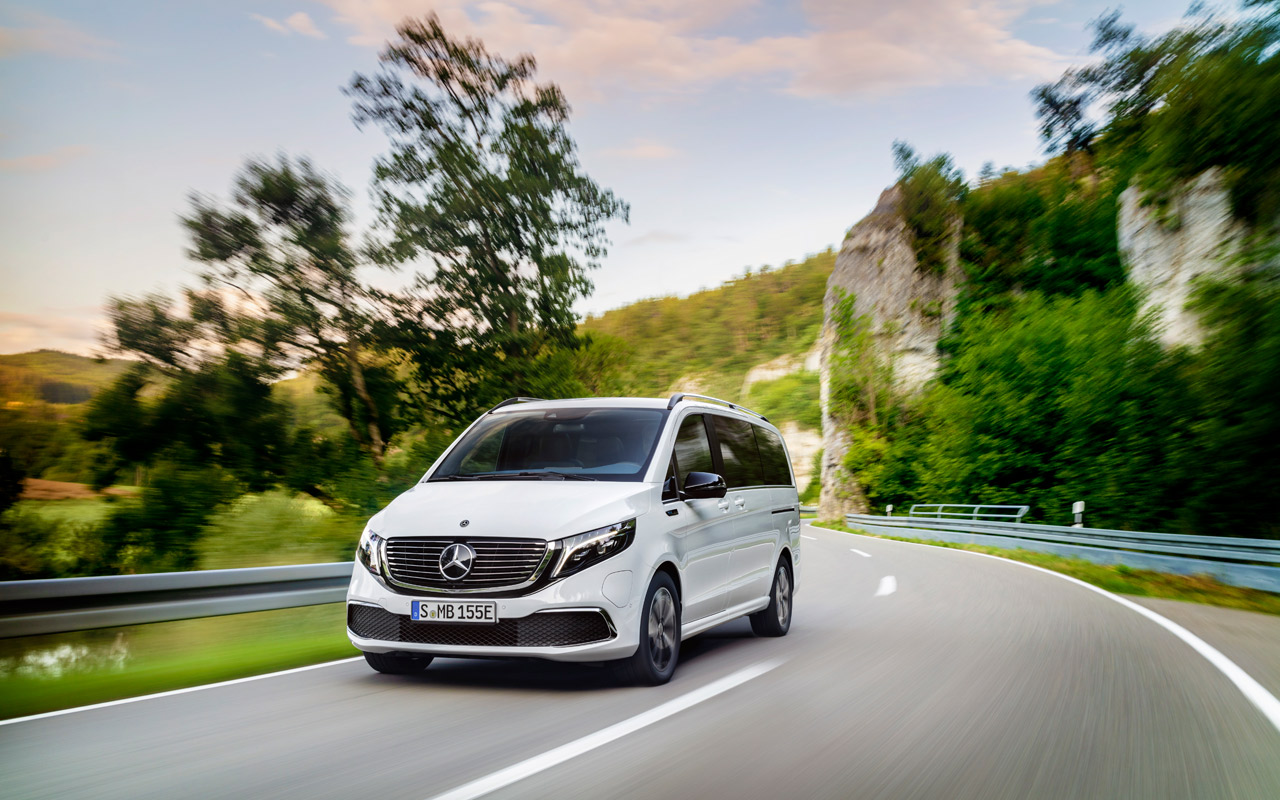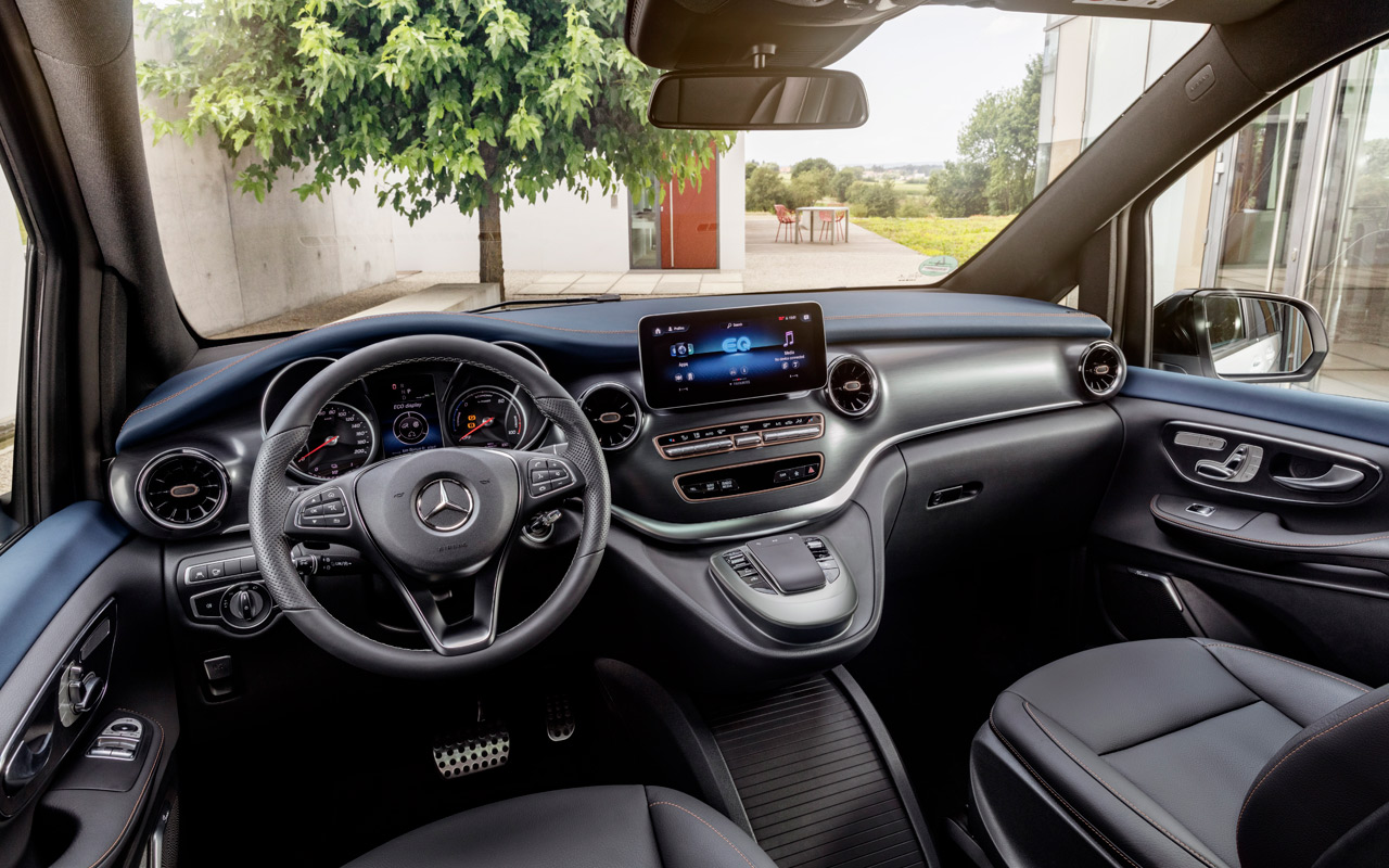 Der Mercedes Benz EQV ist die erste vollelektrische Großraumlimousine im Premiumsegment aus dem Hause Mercedes. Der EQV passt mit seinem Design in die Formsprache der Technologiemarke EQ und bietet ein Raumangebot wie die V-Klasse. Damit verbindet er zwei Elemente zu einem neuen Angebot. Dank der serienmäßigen Schnellladefunktion lässt sich der EQV in 35 Minuten auf 80 Prozent laden. Die Interaktion mit dem Auto passiert über das serienmäßige Mercedes-Benz User Interface mit hochauflösendem 10-Zoll Touchscreen und der intelligenten Sprachsteuerung mit natürlichem Sprachverstehen.