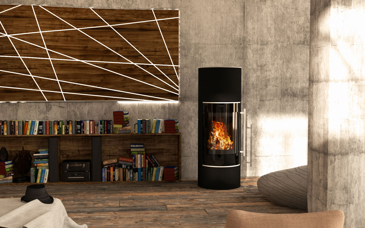 Um 360 Grad drehbar gelagert, kann man das Sichtfenster vom Der Kamindoktor MyOfen R auf die Sitzposition ausrichten. So ist sichtbar, wie das Holz mit der stromlosen Belüftungsautomatik immer im gewünschten Tempo und mit der gewünschten Heizleistung abbrennt.