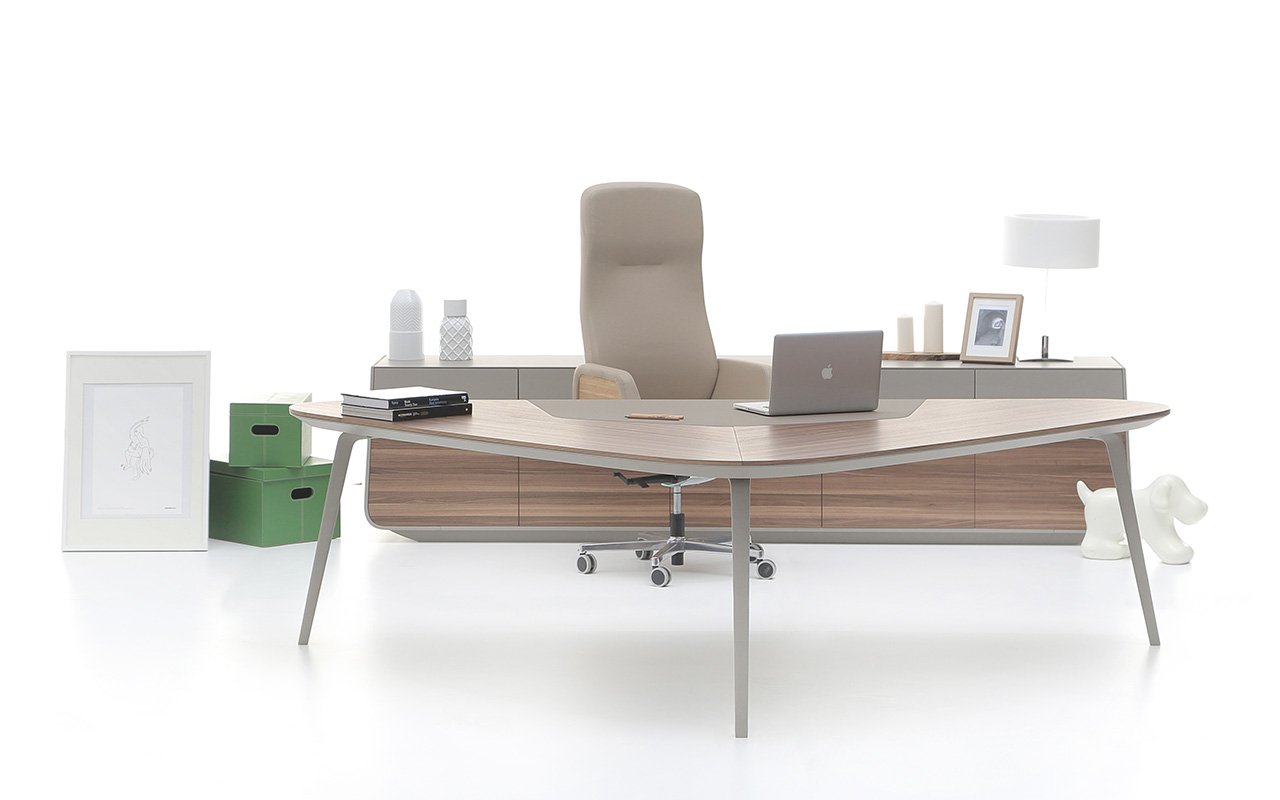 Die Ashbury Möbelserie aus dem Hause Nurus überzeugt durch Ihre hohe Qualität, das Design und die Funktionalität. Zur Serie gehören Schreibtische, Sideboards und Schränke. Der Schreibtisch ist in verschiedenen Formen, die Sideboards und Schränke in unterschiedlichen Größen erhältlich. Außerdem stehen drei verschiedene Oberflächen zur Auswahl. Mit der Ashbury Möbelserie schafft Nurus ein modernes, offenes Chefbüro, das gleichzeitig die Integration verschiedener Technologien ermöglicht. Dazu zählen eine kabellose Lademöglichkeit, ein Kabelkanal, der sich per Touch aktivieren lässt sowie eine versenkbare TV-Einheit. Die großzügig gestalteten Möbel bieten ausreichend Arbeits- und Ablageflächen. Abgerundete Ecken und weiche Linien nehmen dem Büro die Härte.