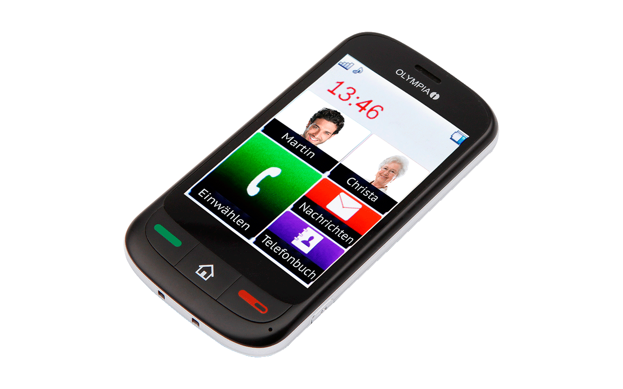 Einfache Bedienung steht bei diesem Telefon im Vordergrund. Der Touchscreen verleiht dem Olympia Touch2 den Look eines Smartphones, macht es aber deutlich einfacher bedienbar. Beispielsweise gibt es eine komfortable Bildkurzwahl für die wichtigsten Kontakte wie Familie und Freunde. Dank Quadband lässt sich das Touch2 überall einsetzen und die Möglichkeit gleich zwei SIM-Karten zu verwenden steigert die Flexibilität nochmals. Eine Notruftaste hilft im Fall der Fälle und die geniale Benachrichtigung über einen niedrigen Akkustand per SMS sorgt für noch mehr Sicherheit. Bis zu 240 Stunden Betriebsbereitschaft sind heutzutage auch eine besondere Eigenschaft – alles in allem ein perfektes Paket für alle, die einfach und sicher telefonieren und erreichbar sein wollen.