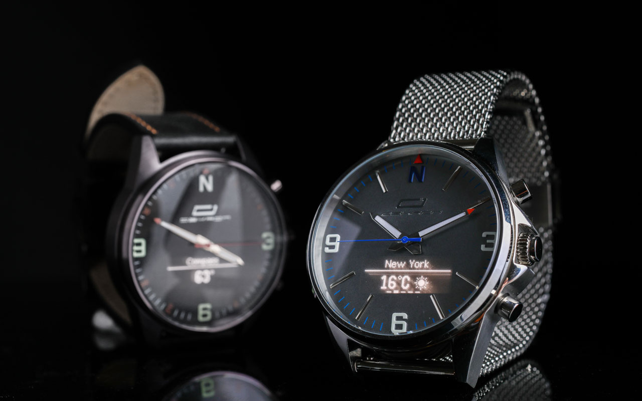 Auf den ersten Blick erkennt man nicht, dass die Oskron Gear Smartwatch ein intelligentes Stück Lifestyle ist: Physikalische Zeiger schweben über einem Zifferblatt, in dem ein kleines Display unscheinbar und diskret eingelassen ist und Nachrichten vom Smartphone anzeigt.