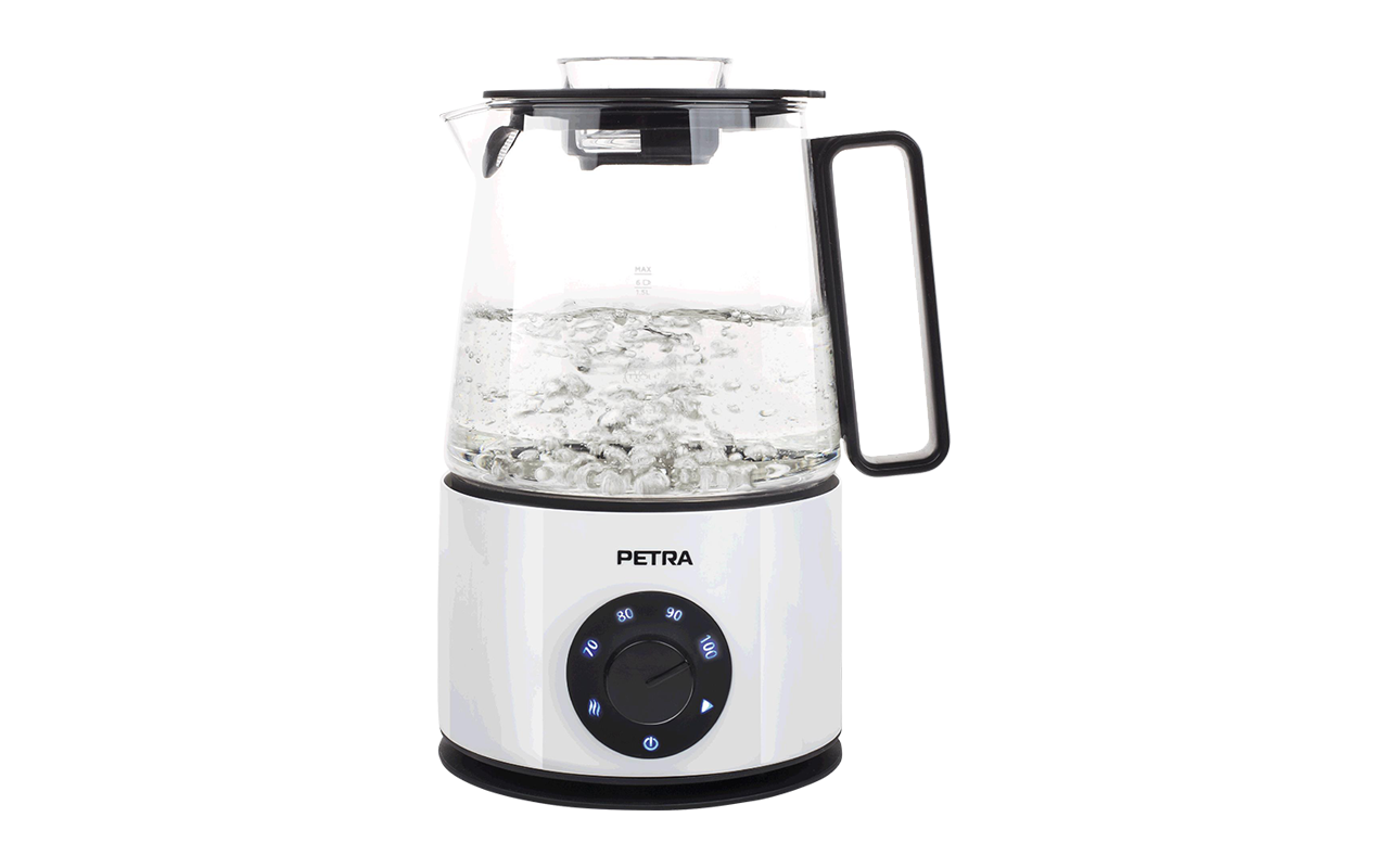 Auch ein scheinbar einfacher Wasserkocher kann etwas hermachen. Der Petra Electric IK 10.00 hebt sich optisch und technisch von herkömmlichen Wasserkochern ab. Schon die 1,5 Liter große Kanne aus Schott Duran Glas bietet optimalen Durchblick auf das, was in der Kanne drin ist. Und das kann nicht nur reines Wasser sein, sondern durch den Edelstahl-Teefiltereinsatz auch leckerer Tee in der individuell liebsten Sorte. Damit deren Geschmack auch voll zur Geltung kommt kann das Wasser in vier verschiedenen Stufen auf 70, 80, 90 oder 100 Grad aufgeheizt werden. Dafür ist eine Induktionsheizung zuständig, die den Metallboden der Glaskanne energiesparend auf Temperatur bringt. Auch wenn die Heizung mit 1,7 kW arbeitet, sollen bis zu 20 Prozent der notwendigen Heizenergie eingespart werden.