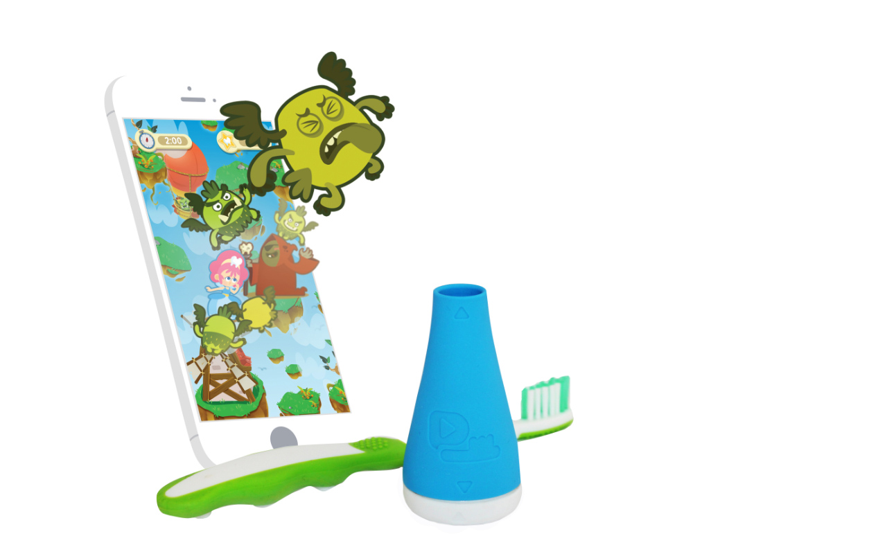 Der Zahnbürstenaufsatz Playbrush der gleichnamigen Marke ist eine Innovation mit hoher Qualität und Bedienkomfort. Mit Playbrush verwandelt sich jede manuelle Zahnbürste in einen Game-Controller. Das Ziel: Die Kinder steuern einfache Spiele auf dem Handy mittels der Bewegung der Zahnbürste – und lernen so das richtige Putzen. Da der Aufsatz auf jede herkömmliche manuelle Zahnbürste passt, braucht nicht jedes Kind einen eigenen Aufsatz. Die Spiele sind so einfach gestaltet, dass Kinder sie leicht verstehen, auch der Zugang zum Spiel über die App passiert mit nur wenigen Klicks. Der Playbrush wird einfach nur durch Bewegung an- und ausgeschaltet; die Verbindung zum Smartphone passiert dann automatisch über Bluetooth.