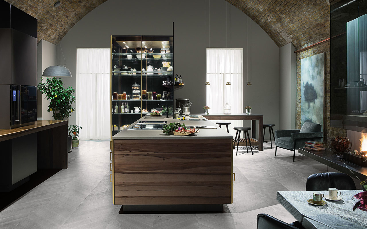 Die Küche “The Fourth Wall” von Poggenpohl ist eine Innovation in der Küchengestaltung, die außerdem durch ihr Design, die hohe Qualität und Funktionalität besticht. Das visionäre Konzept ist eine neue Idee für Privatküchen, die professionelles Kochen zu Hause ermöglicht. Weltweit führende Anbieter von Design und Technik haben dieses Konzept gemeinsam entwickelt. Statt die einzelnen Elemente der Küche unsichtbar zu machen, hat sich Poggenpohl von den Küchen früherer Zeiten inspirieren lassen, bei denen die Anordnung durch die Funktion bestimmt wurde. Die Konzeptküche „The Fourth Wall“ verbindet mehrere Bereiche miteinander – der Name stammt aus der Welt des Theaters und bezeichnet die unsichtbare Wand, die das Publikum von den Schauspielern trennt. Die Küche verinnerlicht den offenen Wohnbereich, in dem Kochen und Essen verbunden werden. Intelligente Oberflächen wechseln auf Knopfdruck von kompaktem Lack zu völliger Transparenz. Einzelne Bereiche lassen sich verbergen oder sichtbar machen. Die einzelnen Teile sind so konstruiert, dass alle Lebensmittel bis zur Zubereitung bei idealen Temperaturen und Klimabedingungen aufbewahrt werden können.