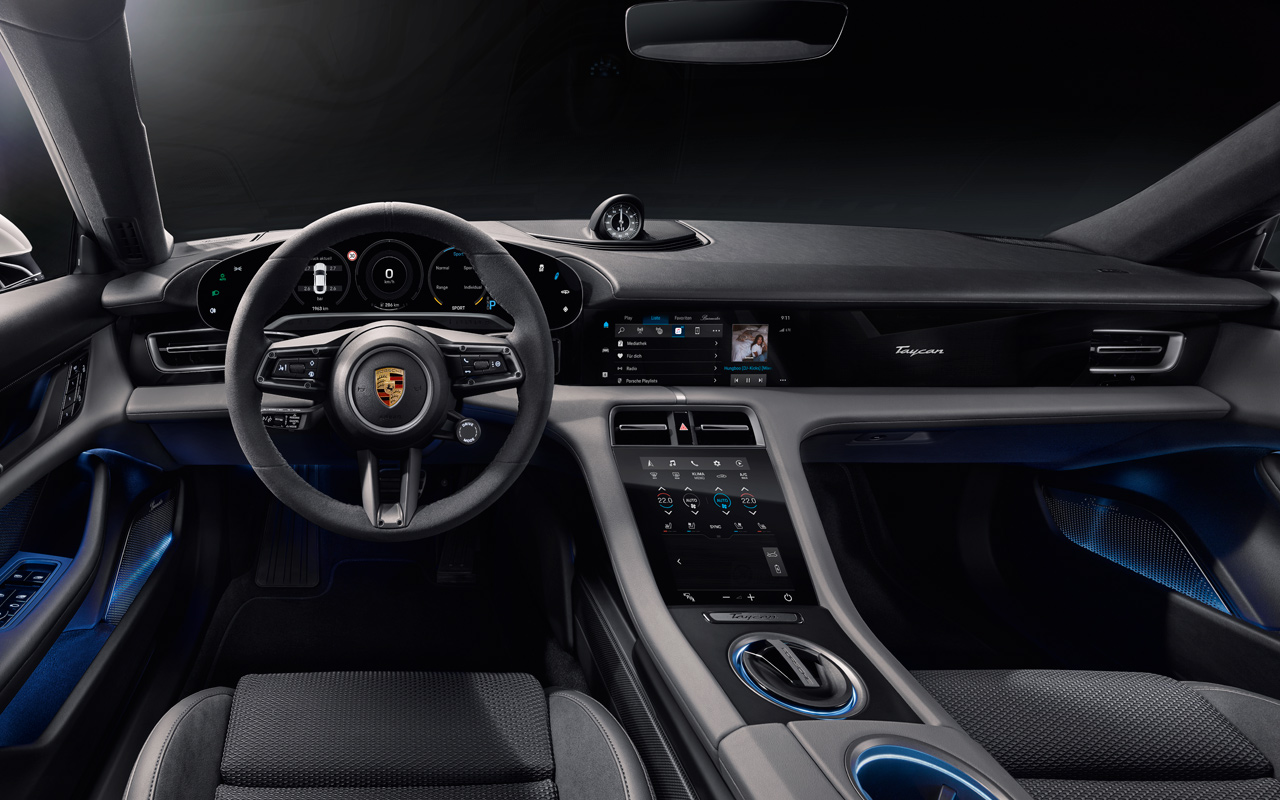 Der Porsche Taycan ist ein vollelektrischer Sportwagen mit einer Leistung von bis zu 560 kW (761 PS). Seine 800-V Architektur schafft eine Ladeleistung von bis zu 270 kW. Bei optimalen Bedingungen kann so eine Reichweite von 100 km in nur 5 Minuten geladen werden. Auch im Innern präsentiert sich der Taycan als echter Porsche: das voll digitale 16,8-Zoll Curved Display liegt im Fokus des Fahrers. Es wird ergänzt durch ein integriertes 8,4-Zoll Mittelkonsolendisplay und ein 10,9-Zoll großes Zentraldisplay.