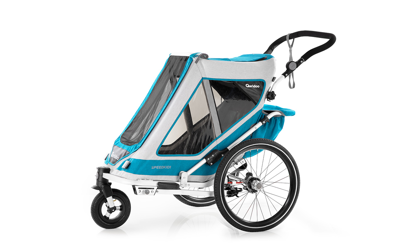 Mit dem Speedkid 2020 bietet Qeridoo einen Kinderwagen für Familien, die es gern etwas schneller haben. Das luftbereifte Buggyrad ermöglicht neben gewöhnlichen Spaziergängen auch Joggingtouren, die das Kind an Komfort nichts einbüßen lassen. Die Blattfederung kann auf verschiedene Belastungen eingestellt werden und der höhenverstellbare Schiebegriff beinhaltet seitliche Kopfprotektoren. Der Speedkid 2020 ist als Ein- oder Zweisitzer erhältlich und bietet in allen Ausführungen hundertprozentigen Schutz. Die Hand-Parkbremse verhindert ein Wegrollen auch im Buggymodus. Zudem ist der Speedkid 2020 mit einem 2-in-1-Verdeck ausgestattet, das die Kleinen sowohl vor Insekten und Spritzwasser, als auch vor Abgasen und Sonnenstrahlen schützt. Dank des kompakten Faltmaßes sowie des geringen Gewichts ist der Speedkid 2020 auch jederzeit leicht zu verstauen.