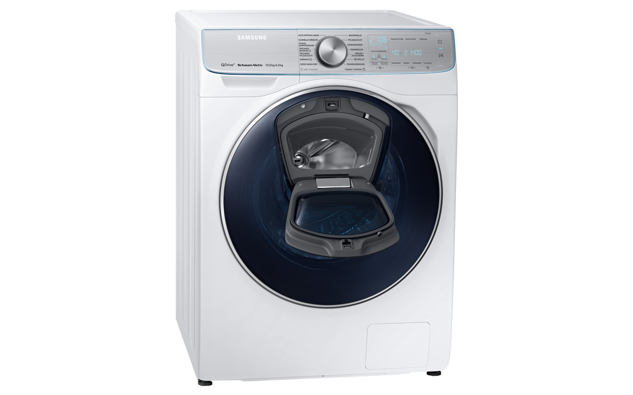 Mit einer Rückwand, die gegenläufig zur Trommel rotiert, beschleunigt der Waschtrockner Samsung QuickDrive WD8800 die Arbeit so, dass 5 Kilo Wäsche in drei Stunden gewaschen und getrocknet werden können.