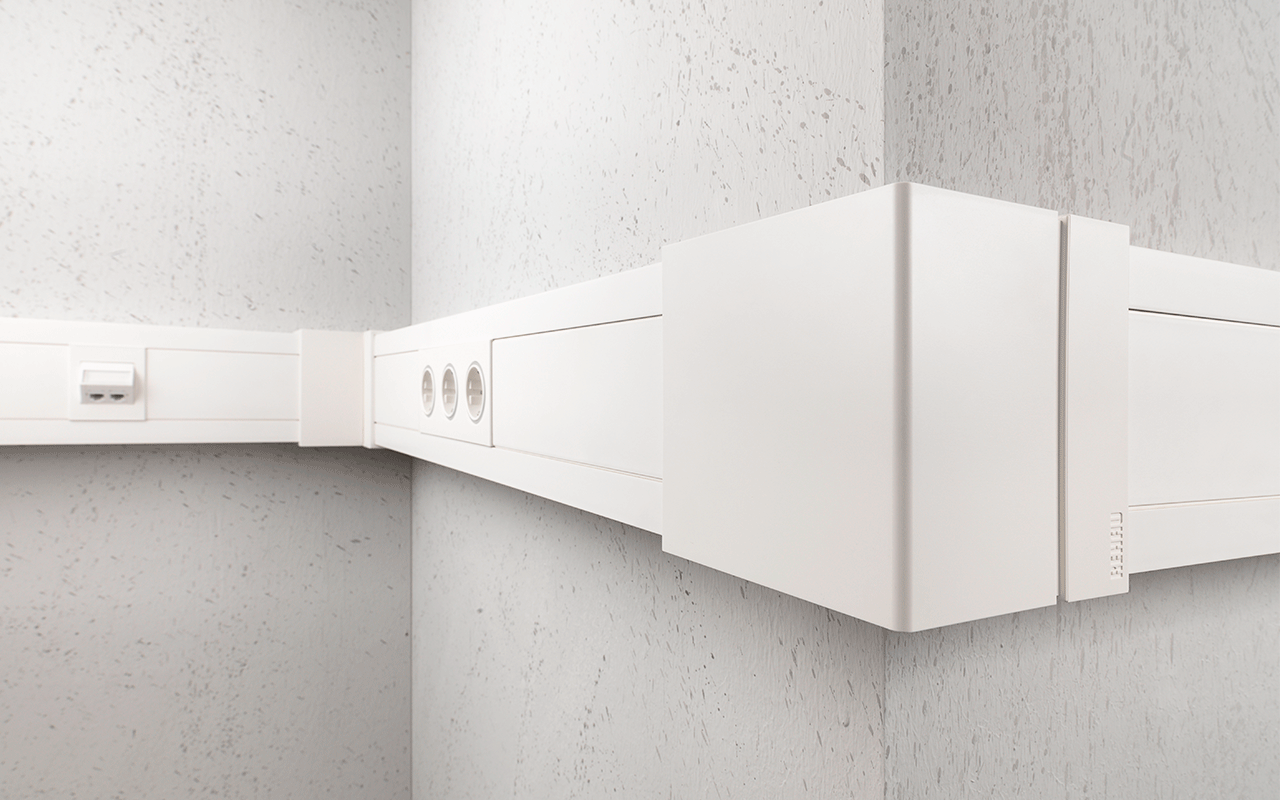 Mit dem Brüstungskanal Signa Base bringt Rehau eine Innovation auf den Markt, die sich außerdem durch ihre hohe Qualität, das Design, den Bedienkomfort und die Funktionalität auszeichnet. Der Kanal ermöglicht den werkzeuglosen Einbau der Geräteeinbaudose. Sie wird mit einem Handgriff auf die Hutschiene am Kanalboden gesteckt und mit einem Daumendruck sicher im Kanalunterteil fixiert. Durch die Produktgestaltung wirkt der Kanal schlanker; der Blendrahmen hat eine sehr geringe Aufbauhöhe. In Zusammenspiel mit den hochwertigen Materialien entsteht so auch äußerlich der Eindruck von Qualität. Das System ist modular aufgebaut, so dass zusätzliche Steckdoseneinheiten ohne Verdrahten und ohne Werkzeug einfach angesteckt werden können. Auch schon eingebaute Steckdoseneinheiten können so erweitert werden. Der Signa Base Brüstungskanal sorgt so für schnelleren Aufbau, weniger Materialverbrauch und eine höhere Flexibilität.