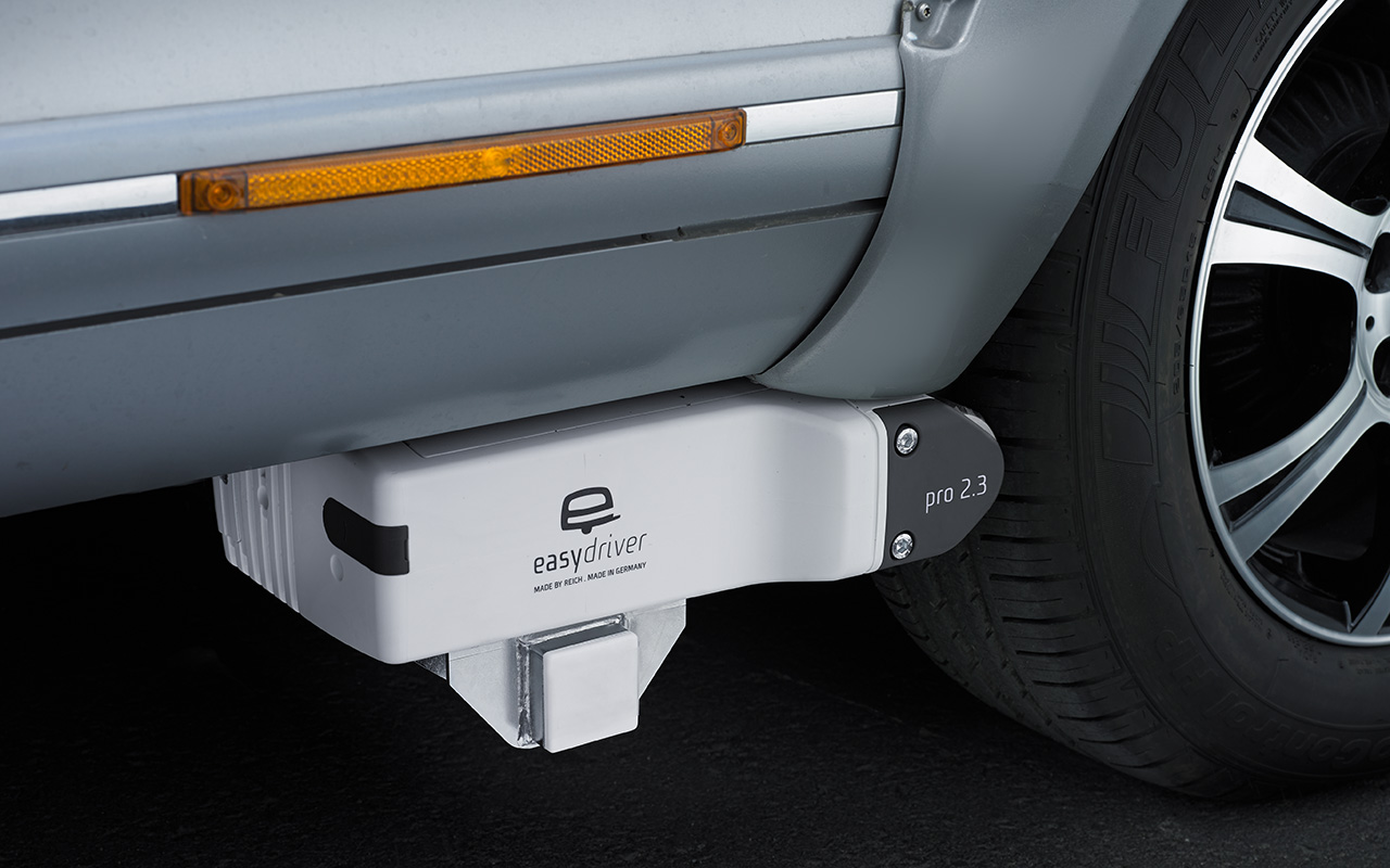 Mit dem Reich easydriver wird das Rangieren des Caravans vor der heimischen Garage und auf dem Campingplatz zum Kinderspiel. Zwei bzw. vier kräftige Motoren schaffen es je nach Ausführung, Wohnwagen bis zu 1,8, 2,3, 2,8 bzw. 3,1 Tonnen Gesamtgewicht zu bewegen, sogar bei einem Gefälle von 15%. Den Reich easydriver gibt es in zwei Versionen: Beim easydriver Basic muss man die Zahnwahlze per Kurbel oder manuell an den Reifen schwenken, in der pro-Version macht das ein Elektromotor. Bis hin zur 360-Grad-Drehung auf der Stelle werdenn alle Bewegungen per Fernbedienung gesteuert, und neuerdings kann man das auch via Bluetooth und per App vom Smartphone aus erledigen. Die Fernbedienung ist also immer in der Hosentasche dabei.