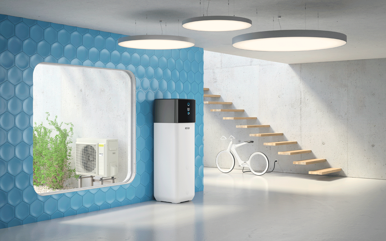 Aus der Daikin-Gruppe stammt die Luft/Wasser-Wärmepumpe ROTEX HPSU compact Ultra, die auf engstem Raum Wärmepumpentechnik und Warmwasserspeicher konzentriert und mit dem umweltfreundlichen Kältemittel R32 arbeitet.