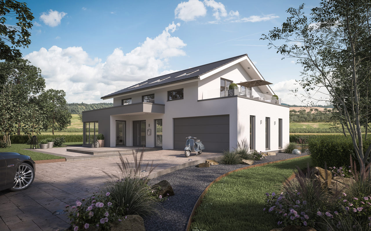 Die Schwabenhaus Selection Potsdam überzeugt, typisch für Schwabenhaus, durch ihre unbegrenzten Möglichkeiten des modularen Systems. Im Design besticht sie durch die mehrfarbige Fassade und bietet dank zusätzlicher Erker noch mehr Wohnraum, wovon auch der große Balkon profitiert, der sich über die Erker und die integrierte Garage streckt. Das eingebaute Smart-Home-System von Loxone sorgt für höchsten Bedienkomfort und ermöglicht die unkomplizierte Kontrolle über das Sicherheitssystem in Form der Zutrittskontrolle, die Energieeffizienz, das Lichtsystem inklusive der Beschattung, die Heizung sowie die Steuerung von Sound- und Multi-Media-Systemen im kompletten Haus. Die optimalen Energiestandards durch die nachhaltige sowie gesundheitsorientierte Bauweise und innovative Haustechnik eröffnen Hausbewohnern das Tor zum Wohnen der Zukunft.