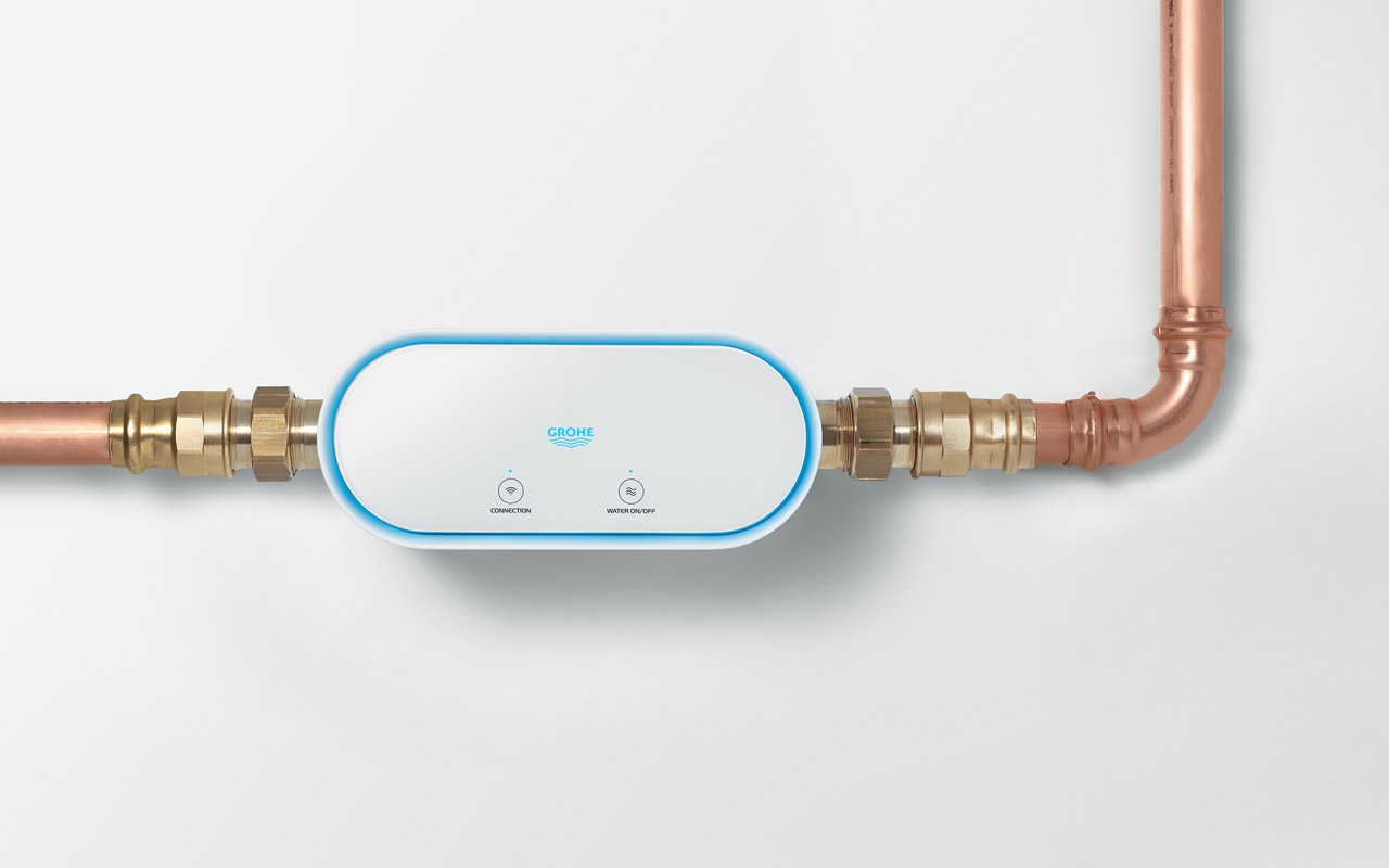 Wasserrohrbrüche kann man vermeiden ‒ oder zumindest ihre Folgen: Grohe Sense Guard erkennt selbst kleinste Leckagen im Leitungssystem und schaltet dann einfach ab. Und verschickt via WLAN und bei Bedarf auch das Internet eine Warnmeldung ans Smartphone.