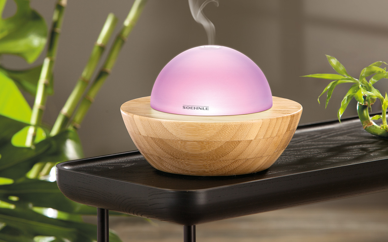 Der Aroma Diffuser Modena von Soehnle punktet in den Kategorien hohe Qualität, Design und Funktionalität. Er bietet individuelle Möglichkeiten, Räume zu beduften und gleichzeitig mit einem passenden Lichtspiel zu versehen. Gefertigt aus echtem Bambus und mattiertem Glas, passt er sich in viele moderne Umgebungen ein. Wer im Lichtspiel sein Lieblingslicht gefunden hat, kann den Diffuser an dieser Stelle anhalten; zusätzlich ist eine automatische Abschaltfunktion vorhanden. Dank Ultraschall-Technologie bietet der Modena eine Beduftungszeit von bis zu sechs Stunden – und trägt mit seinem Licht- und Duftspiel dazu bei, den Wohlfühleffekt im Raum zu erhöhen.