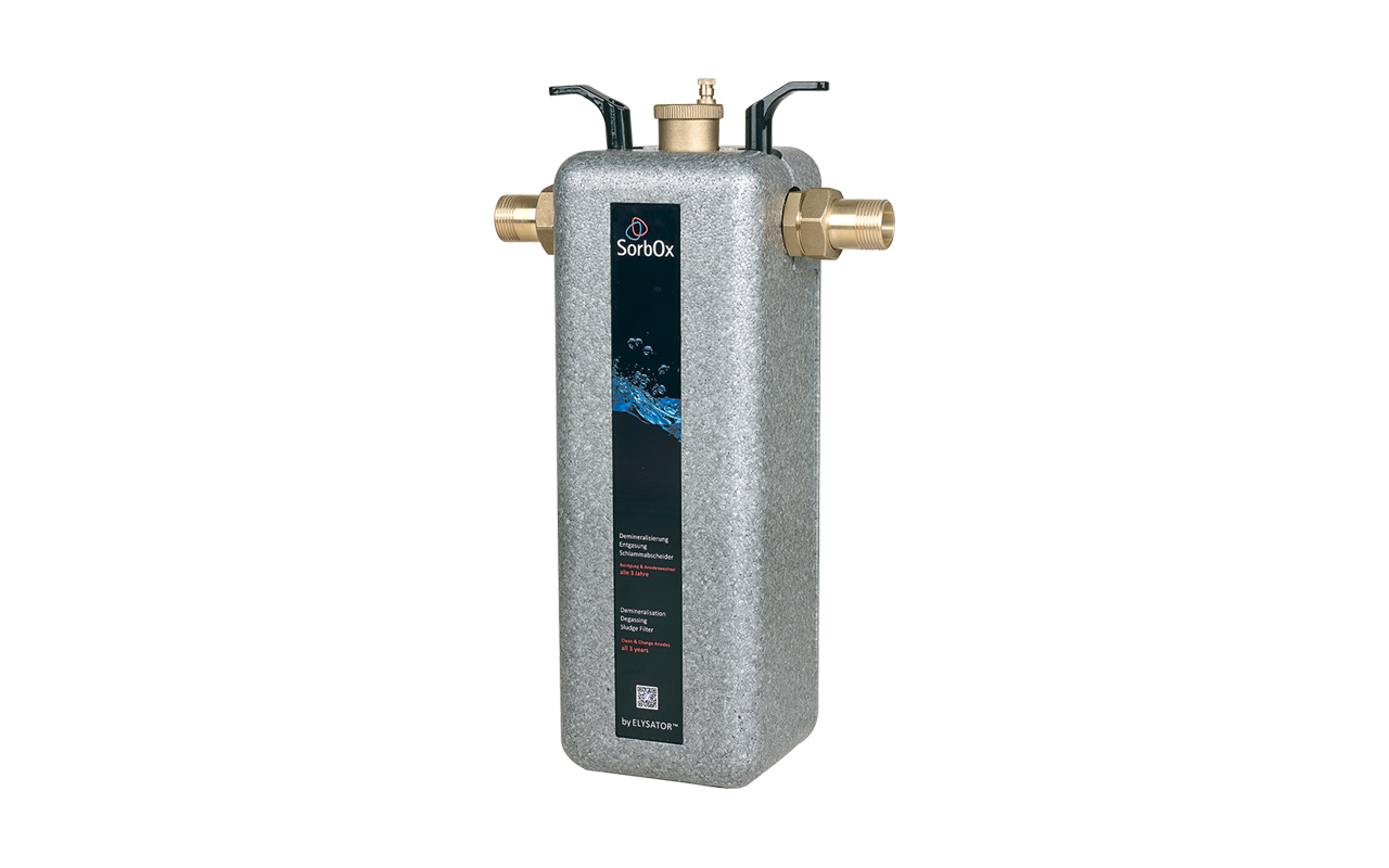 Mit dem SorbOx Filter für Heizungswasser liefert Elysator ein Produkt, das gleichermaßen durch seine hohe Qualität, seine Funktionalität und Ökologie überzeugt. Der Filter absorbiert Gase und Mineralien und entfernt effektiv Verunreinigungen aus dem Heizungswasser. Nach dem Einbau demineralisiert die integrierte Ionentauscherpatrone das zirkulierende Heizungswasser. Einige Tage später, wenn Mineralien und Kalk vollständig aus dem Wasser entfernt sind, wird anstelle der Filterpatrone die Elysator Schutzanode eingesetzt. So werden Mikrogasblasen entlüftet und gelöste Gase wie Sauerstoff und Kohlendixoid elektrochemisch entfernt, Säure wird gebunden. Rostschlamm und andere Verunreinigungen werden im Filter zurückgehalten. Das Ergebnis ist ein salzarmes, sauberes Wasser, das nicht nur Korrosionsschäden verhindert, sondern die Effizienz und Betriebssicherheit moderner Heizungssysteme erhält. Der SorbOx Filter vereint Korrosionsschutz mit Demineralisierung in einem Gerät ohne die Verwendung von schädlichen Materialien oder chemischen Zusätzen. Der SorbOx Filter funktioniert ohne Fremdstrom. Die sehr stabile Ausführung aus hochwertigem, rostfreiem Edelstahl ist für den Langzeiteinsatz in Heiz- oder Kühlkreisläufen ausgelegt.