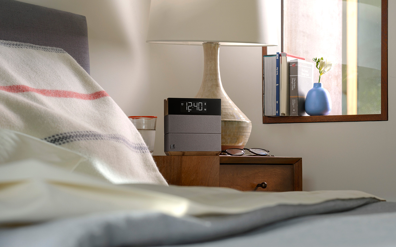 Musik am Bett – für viele ist sie einfach ein Muss. Der Bluetooth-Lautsprecher Soundfreaq Sound Rise ist dazu das optimale Werkzeug, denn die Entwickler haben ihm einen integrierten Wecker spendiert. Damit kann man beruhigt mit Musik vom Smartphone oder Tablet einschlafen, denn man muss nicht mehr ans Ausschalten denken. Und morgens wacht man einfach sanfter auf, wenn die Musik eben nicht aus den oft quakenden Lautsprechern eines Telefons tönt, sondern aus einer veritabel klingenden Box. Das Ganze ist in ein elegantes Holzgehäuse verpackt, mit einer Uhr, die dank sechs Helligkeitsstufen (auf Tastendruck ein, Dauerlicht Stufe 1-5) niemandem lästig fällt. Und über einen integrierten USB-Port bekommt das Smartphone auch dann über Nacht neue Energie, wenn die einzige Steckdose ziemlich weit weg ist.