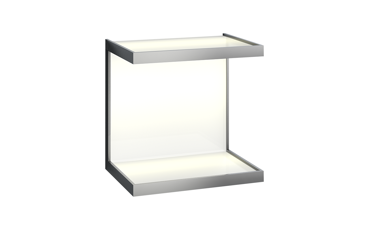 Beim Aluminium Glasregal-Konzept „LICHTREGALE“ aus dem Hause SPRINZ kann man zwischen einer Spiegelrückwand und schwarzen oder weißen Glasrückwänden wählen. Es stehen zwei Modelle zur Verfügung: Regal 155 mm oder 375mm tief. Jeweils mit drei beleuchteten oder unbeleuchteten, satinierten Glasböden. Ein besonderes Designelement im Raum stellt die beleuchtete Variante dar.
