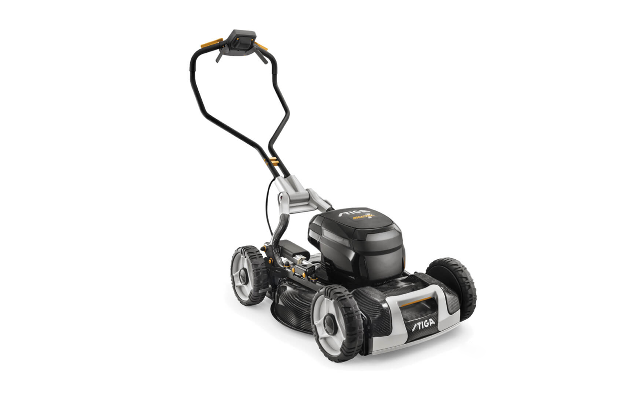 Carbon und Kevlar machen den Akku-Rasenmäher Stiga Model 1 zu einem der fortschrittlisten Vertreter seiner Gattung. Mit einem kraftvollen Antrieb und einer Schnittbreite von 48 cm eignet er sich auch für größere Rasenflächen.