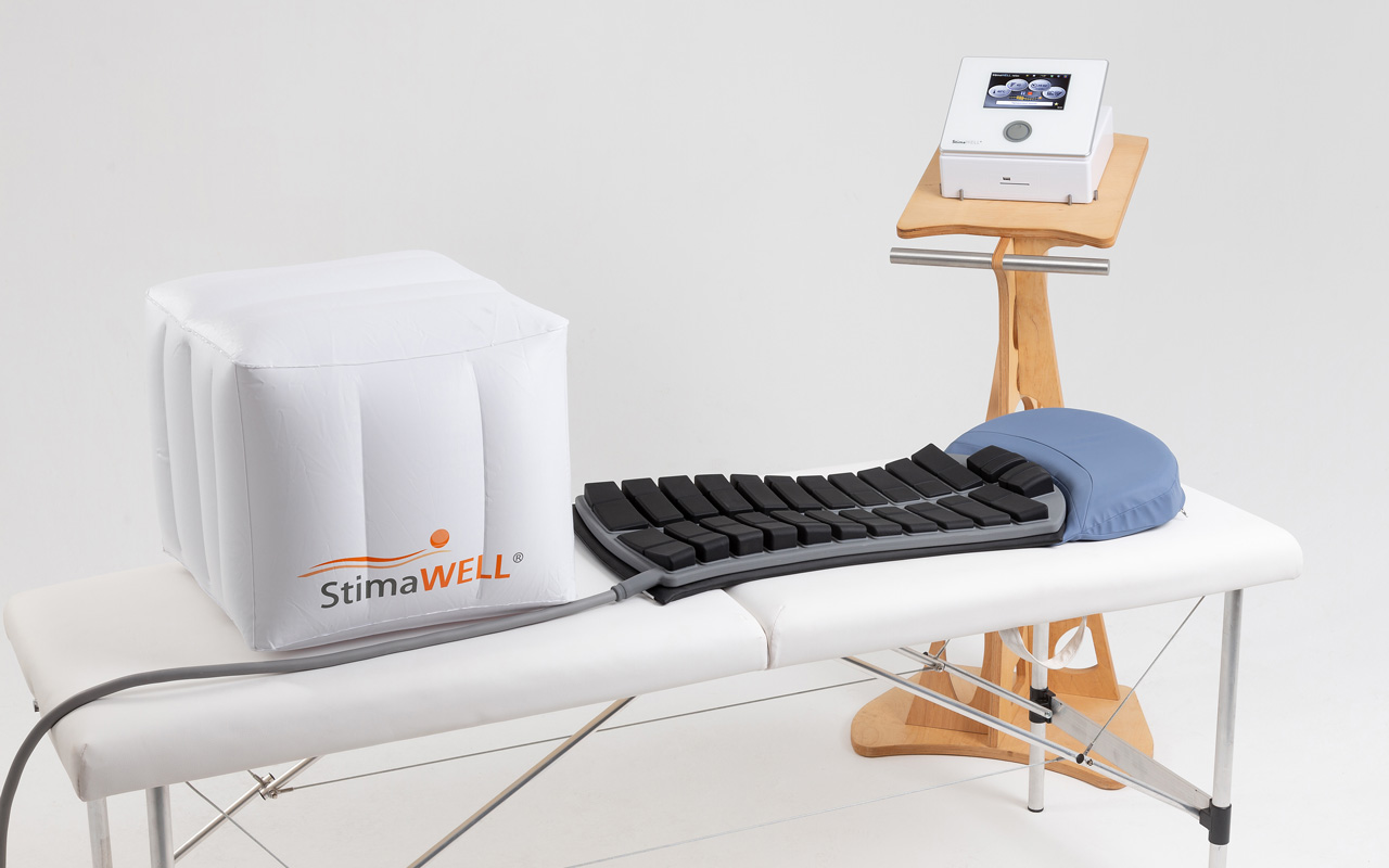 Damit sind Rückenschmerzen der zweithäufigste Grund für einen Arztbesuch. Gerade chronische Schmerzpatienten benötigen oftmals langwierige und multimodale Behandlungskonzepte, um dem Rückenschmerz dauerhaft wirkungsvoll begegnen zu können. Das patentierte StimaWELL®120MTRS System ist ein außergewöhnliches therapeutisches Instrument, welches die Behandlung der unterschiedlichsten Rückenbeschwerden unterstützt.