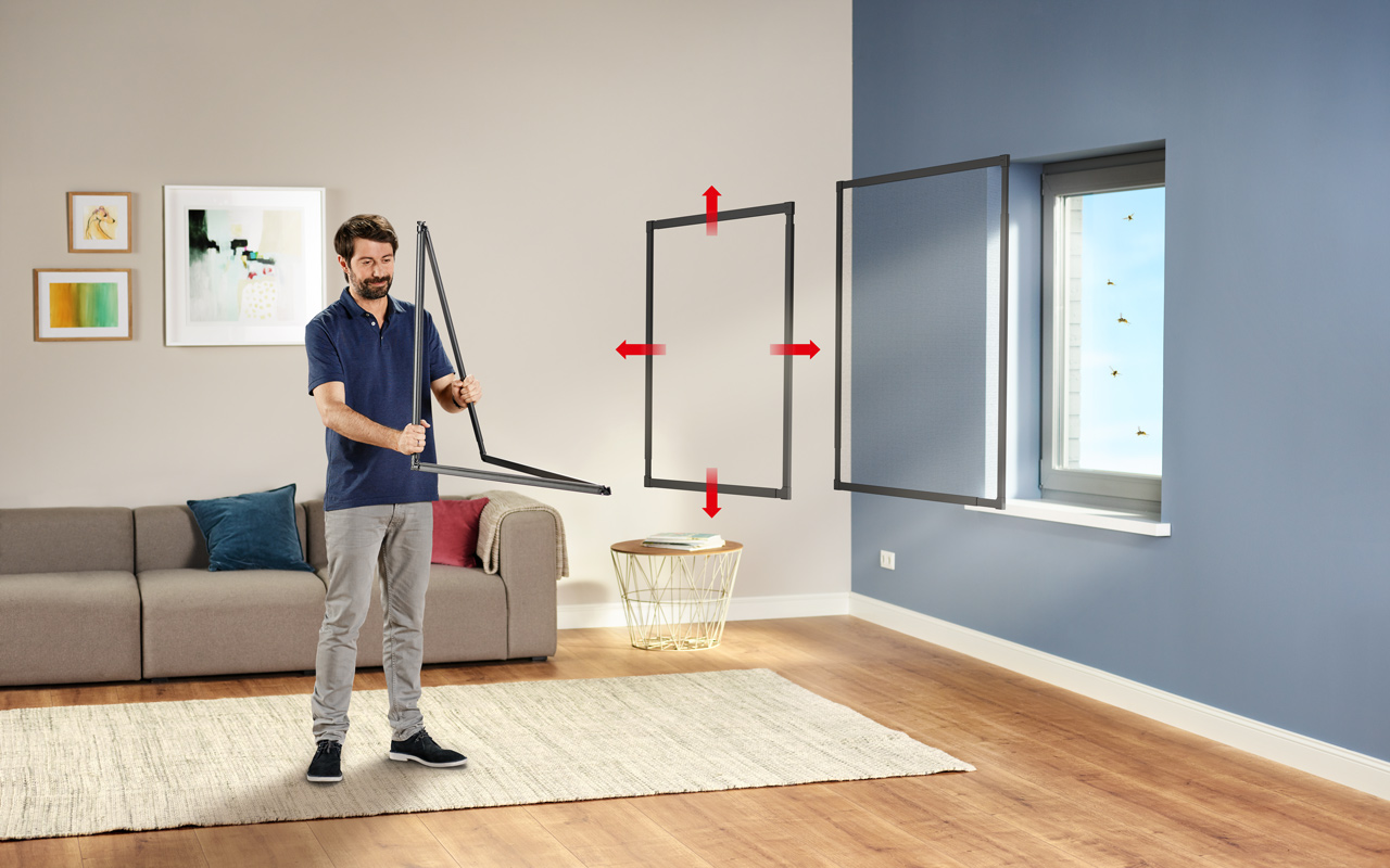 Gerade in der heißen Jahreszeit will man auf schnelle und effiziente Weise dafür sorgen, dass unliebsame Insekten wie Fliegen, Mücken oder Wespen keine Möglichkeit haben, in die eigenen vier Wände zu kommen. Ideal hierfür ist der Insektengitterrahmen Insect Stop von Tesa. Der hochwertige faltbare und teleskopierbare Alu-Rahmen ermöglicht eine schnelle Montage ohne Bohren oder Sägen. Das Gitter bietet optimalen Schutz vor Insekten bei stets gewährleisteter Durchsicht und Lüftung.
