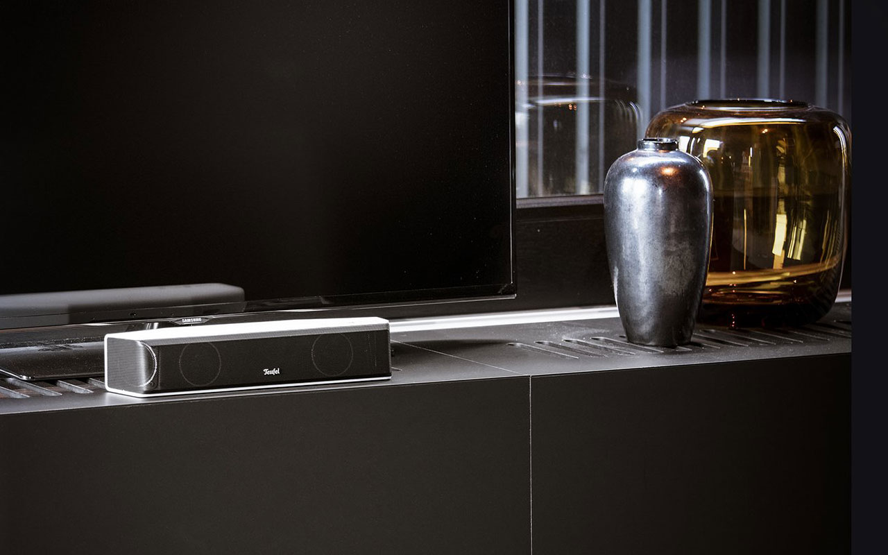High-End-Sound holt der Soundbar Teufel Cinebar Pro zum Fernseherlebnis mit Surround-Knalleffekten ins Haus. Dafür sorgt auch der Wireless-Subwoofer im 250-Millimeter-Format.